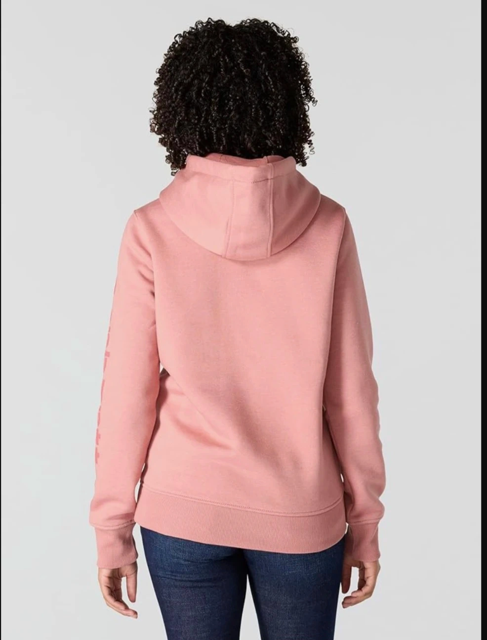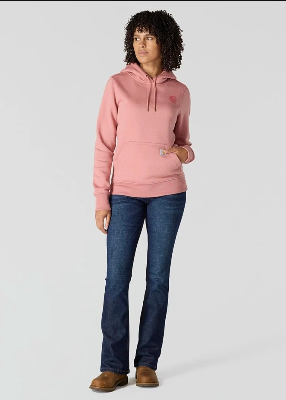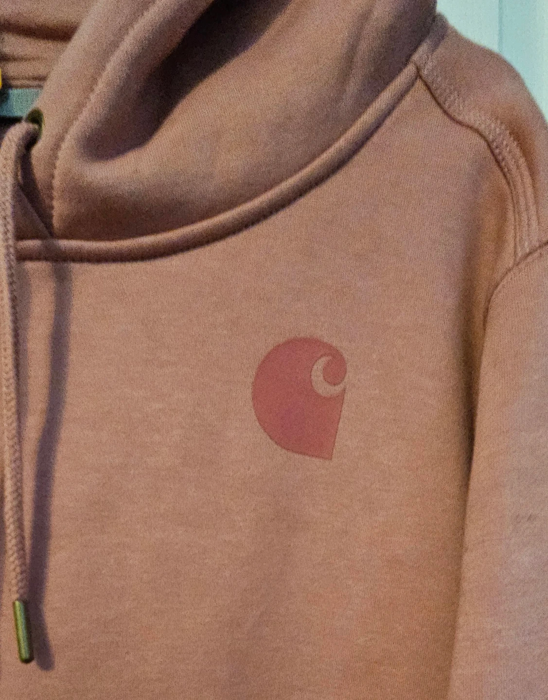 Carhartt hooded sweatshirt in a size 2X(20-22). Relaxed fit construction. Features a kangaroo pocket and Carhartt logo on left sleeve & front