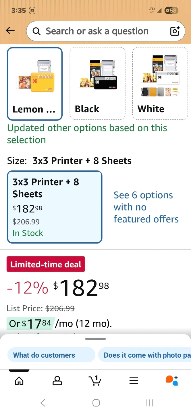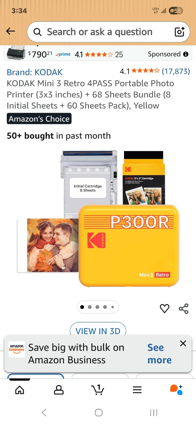KODAK Mini 3 Retro NEW, Bluetooth, portable photo printer. Comes with one initial cartridge and 68 sheets of photo paper. Prints 3x3 inch photos.