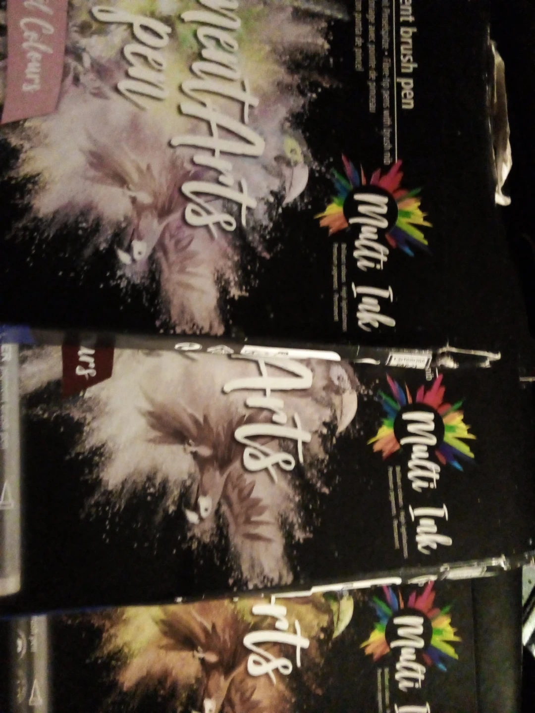 There are three sets of t byhese Multi Ink brush pens are designed for arts and crafts. They feature a brush tip for versatile application. Perfect for detailed work and creative projects!