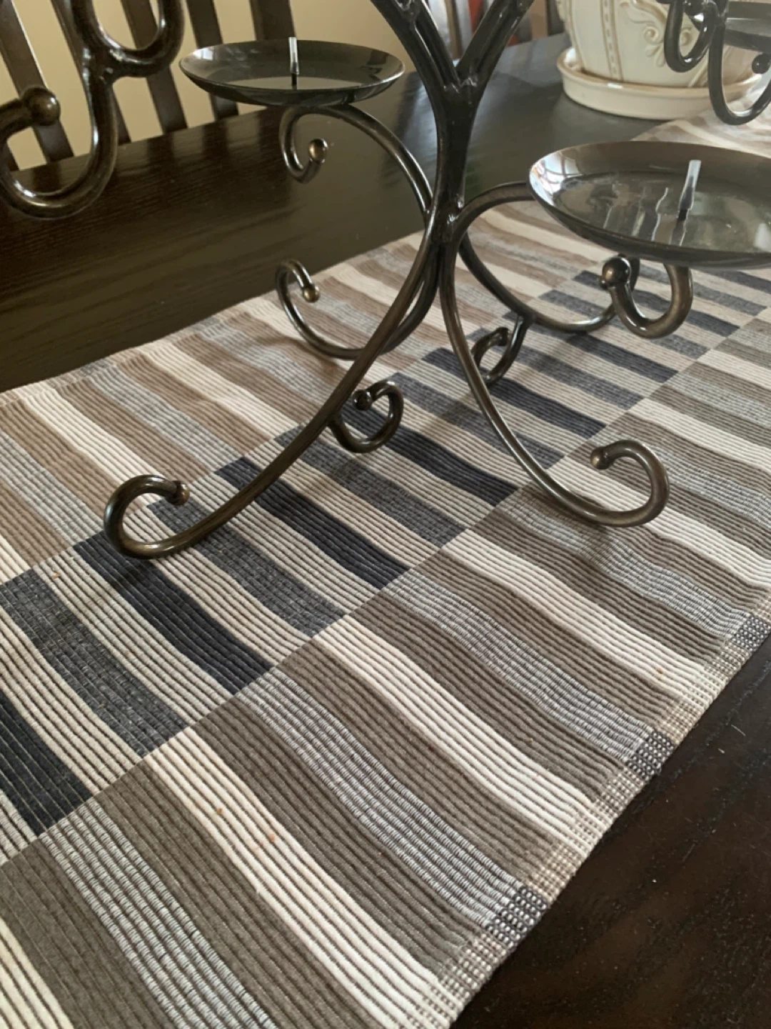 This elegant black metal candelabra holds up to seven pillar or taper candles. It's made of durable metal with a decorative scroll design. Perfect for adding ambiance to your dining table or mantelpiece!