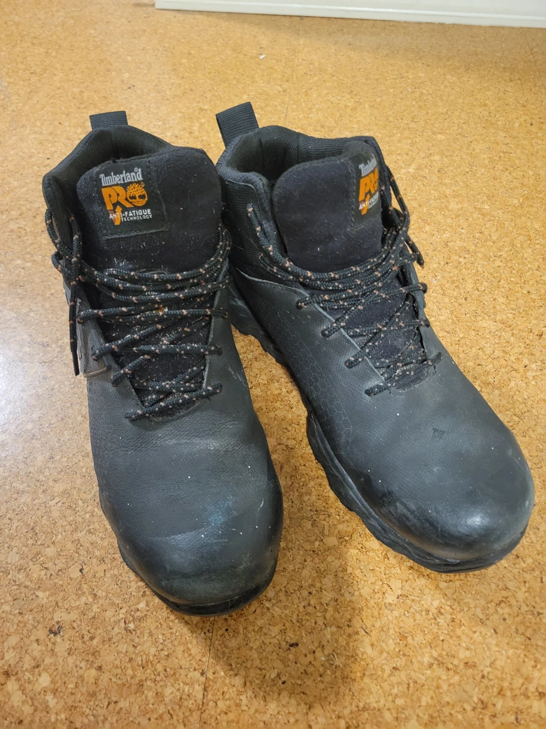 Selling a pair of Timberland PRO boots in size 10W. They feature anti-fatigue technology and a non-metallic toe cap for added protection. The boots were lightly used for 2 weeks while supervising a work project.