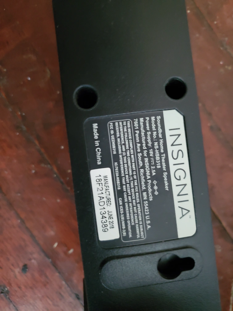 Selling an Insignia Soundbar Home Theater Speaker, model number NS-HSB318.