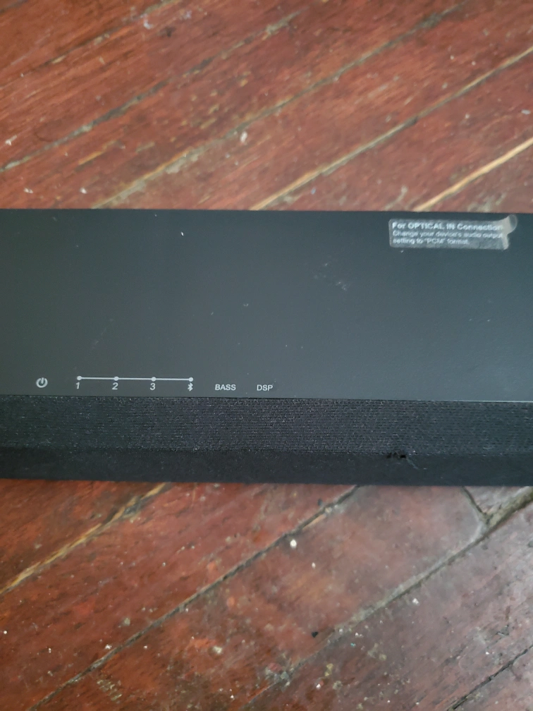It works great and is in good condition, ready to enhance your home entertainment setup. It features optical and line-in connections for versatile audio input options. Manufactured in June 2018