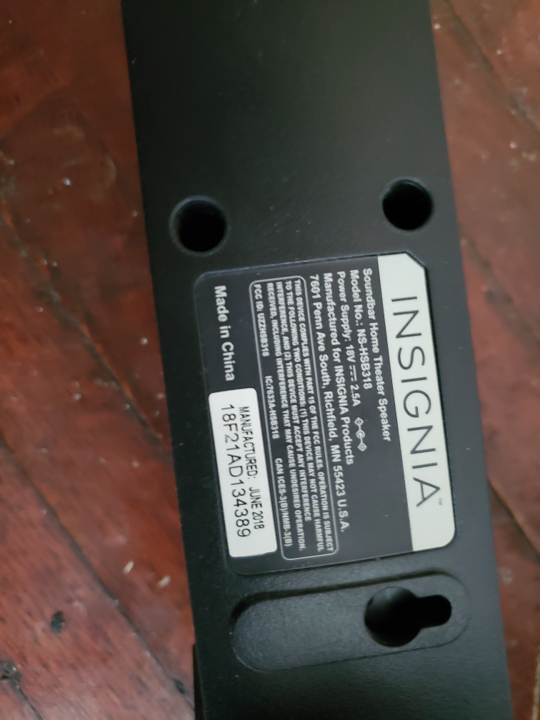 Selling an Insignia Soundbar Home Theater Speaker, model number NS-HSB318.