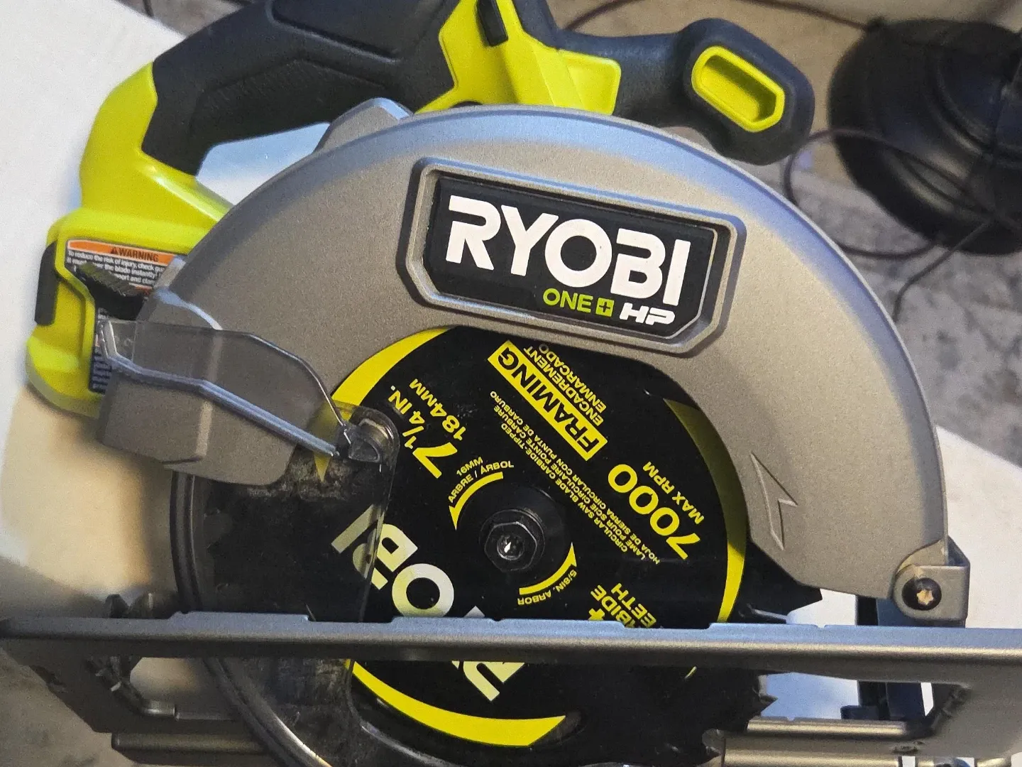 Selling a Ryobi ONE+ HP circular saw. It uses a 7 1/4 inch blade and has a max RPM of 7000. Great for framing and other projects!