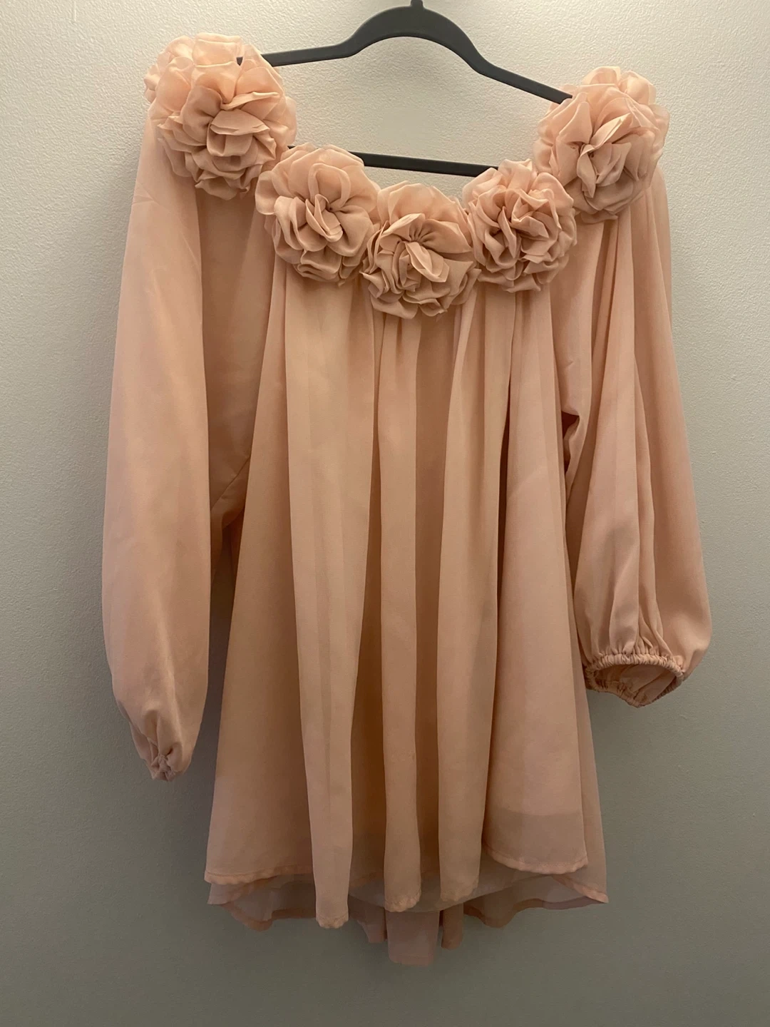 Beautiful Blouse , size 2X, generous sizing , colour doesn’t show up well in pictures, but is a very nice light pink colour, looks beautiful on and has only been worn once