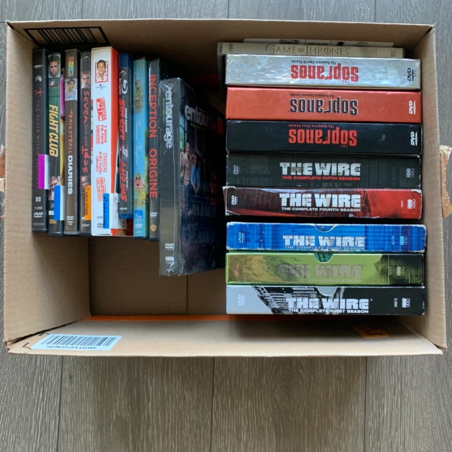 This collection includes multiple seasons of popular TV series on DVD. You'll find seasons 1,2,4 of The Sopranos and the complete series of The Wire, plus Game of Thrones season 3. Several popular movies are also included. They're great for binge-watching!