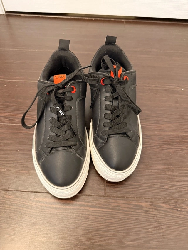 Black F_WD lace-up sneakers with side coordinates printed on them. Original price $400. Size 36 (fits like a US 6). Used, but in like-new condition. Cash only, please. For pickup by owner.