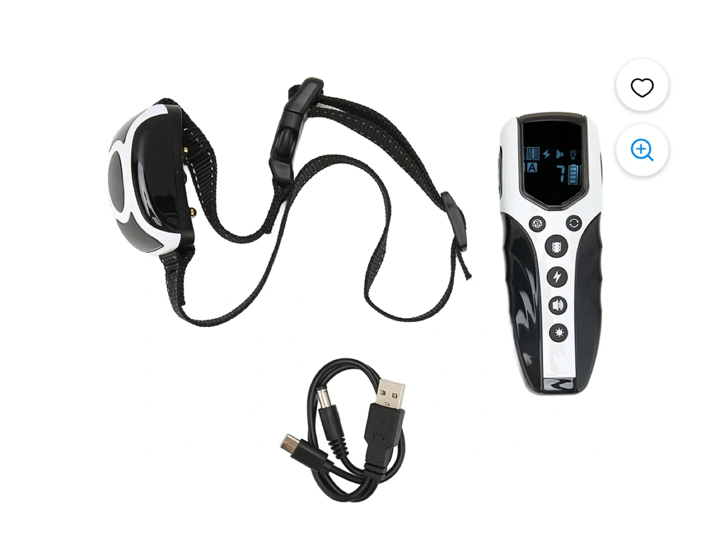 I'm selling a dog training collar that comes with a remote. It includes the collar, remote, and a USB charging cable. It's in great condition and ready to help with your dog's training