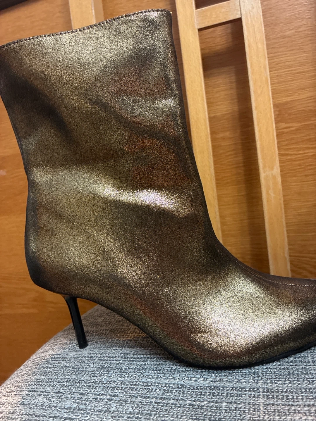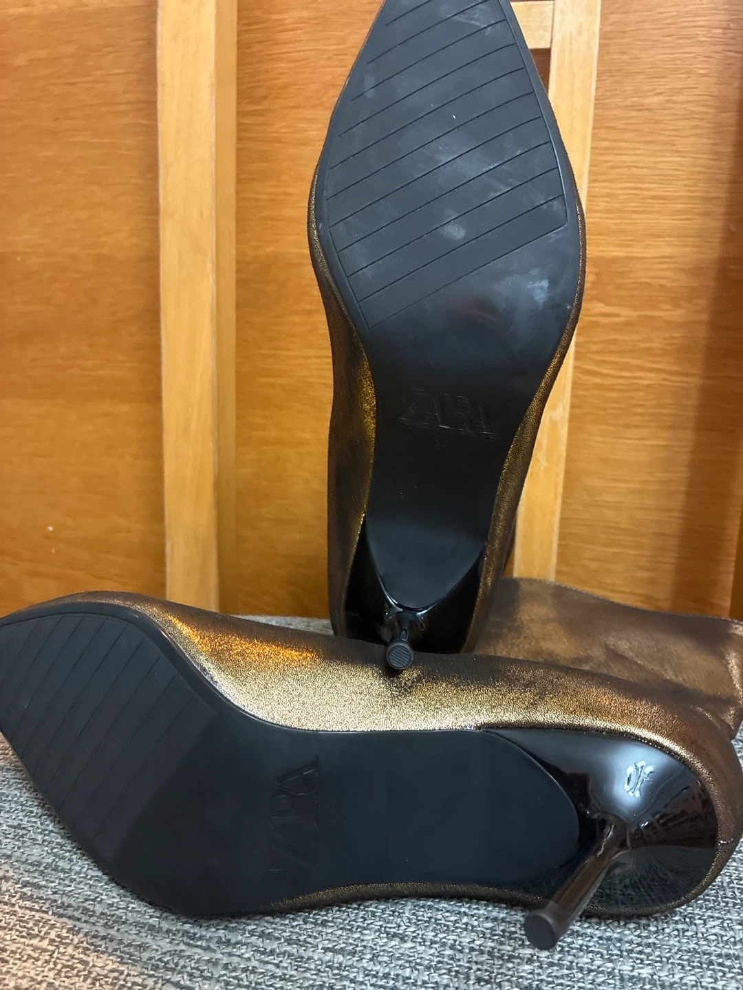 Selling a pair brand of new Zara ankle boots in a shiny gold colour. They are a European size 37. US 6.5 Perfect for adding a bit of sparkle to your outfit!