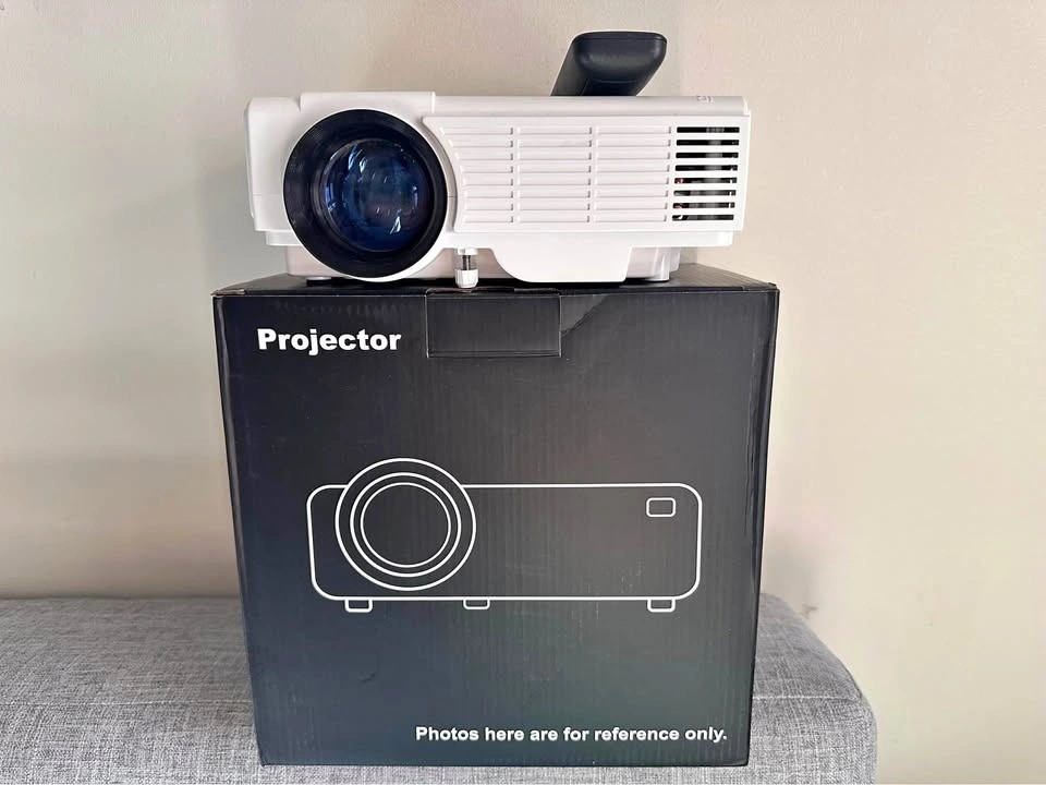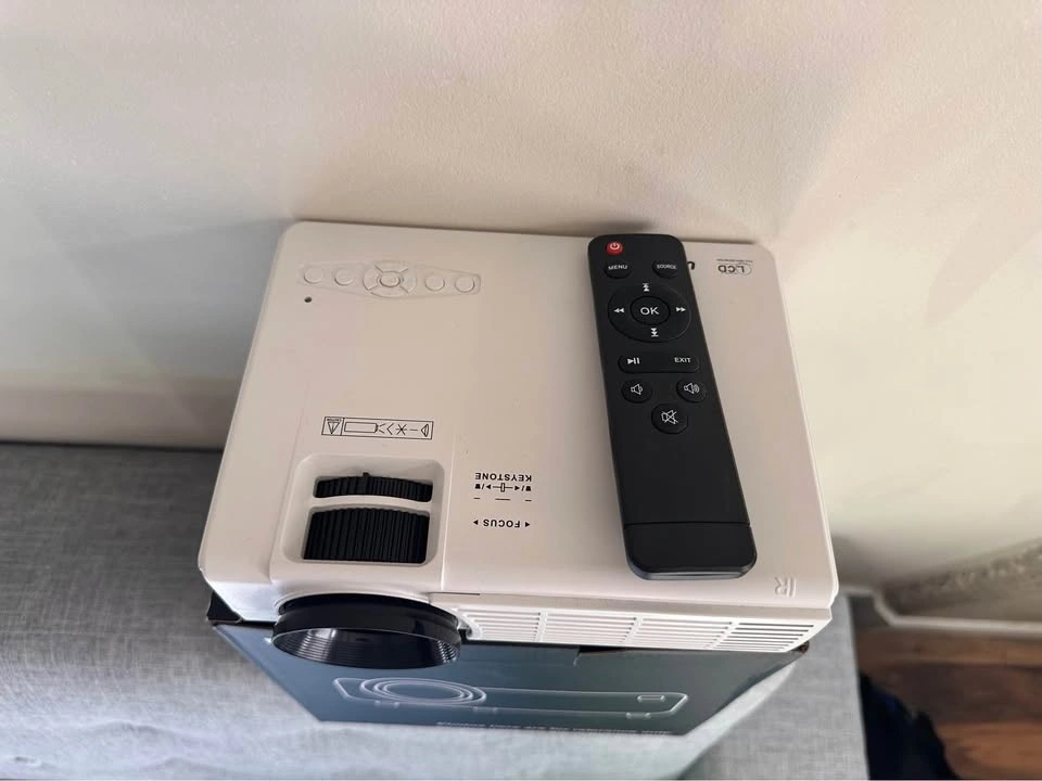 Portable 1080 projector in very good condition, works perfectly. Compatible with iOS, Android, Windows, TV, HDMI, and USB. Comes with remote control and projection screen. Selling due to moving.