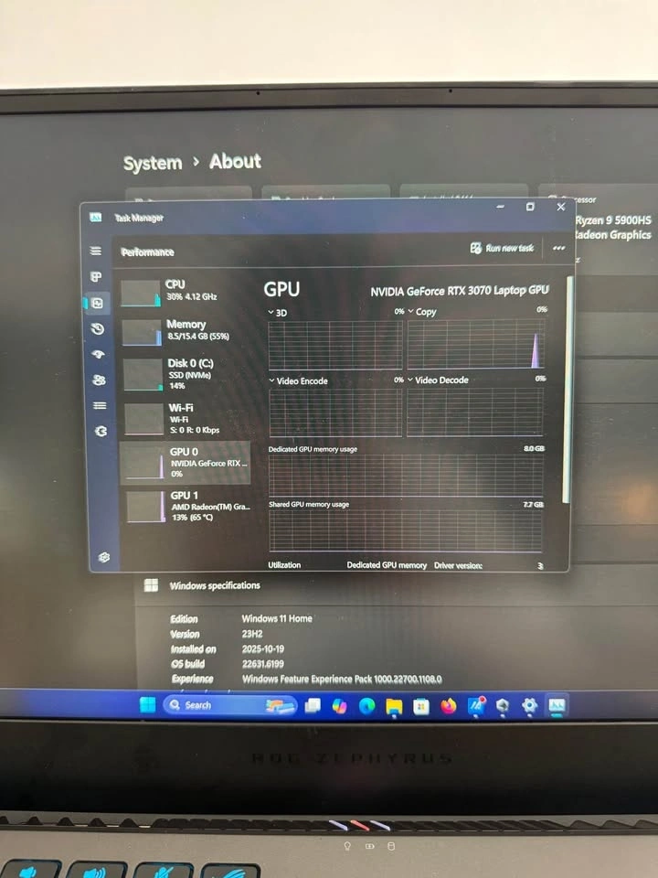 Selling an excellent and working condition gaming laptop. Mostly used for school and light gaming. Includes box and charger. Specs: Ryzen 9 5900HS, RTX 3070, 16GB RAM, 1TB SSD, 2560x1440p display @ 165Hz. Feel free to message if you have any questions!