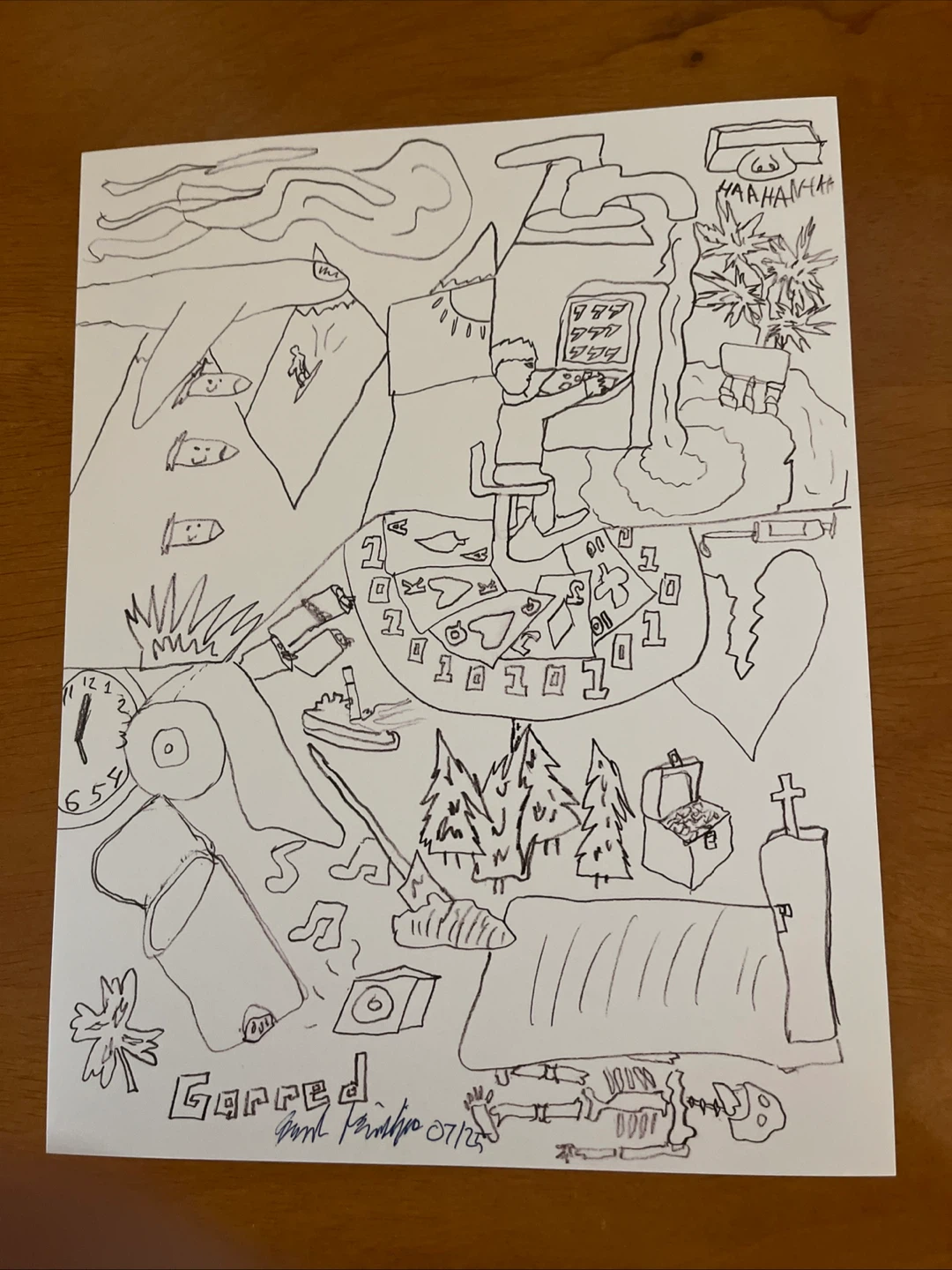 Homemade drawing. I have two prints available: one on cardboard at the price shown, and one on good quality print paper. Message me for details on shipping it will cost you $6.00 to get it shipped. It is signed by myself “Garred McIntyre”.
