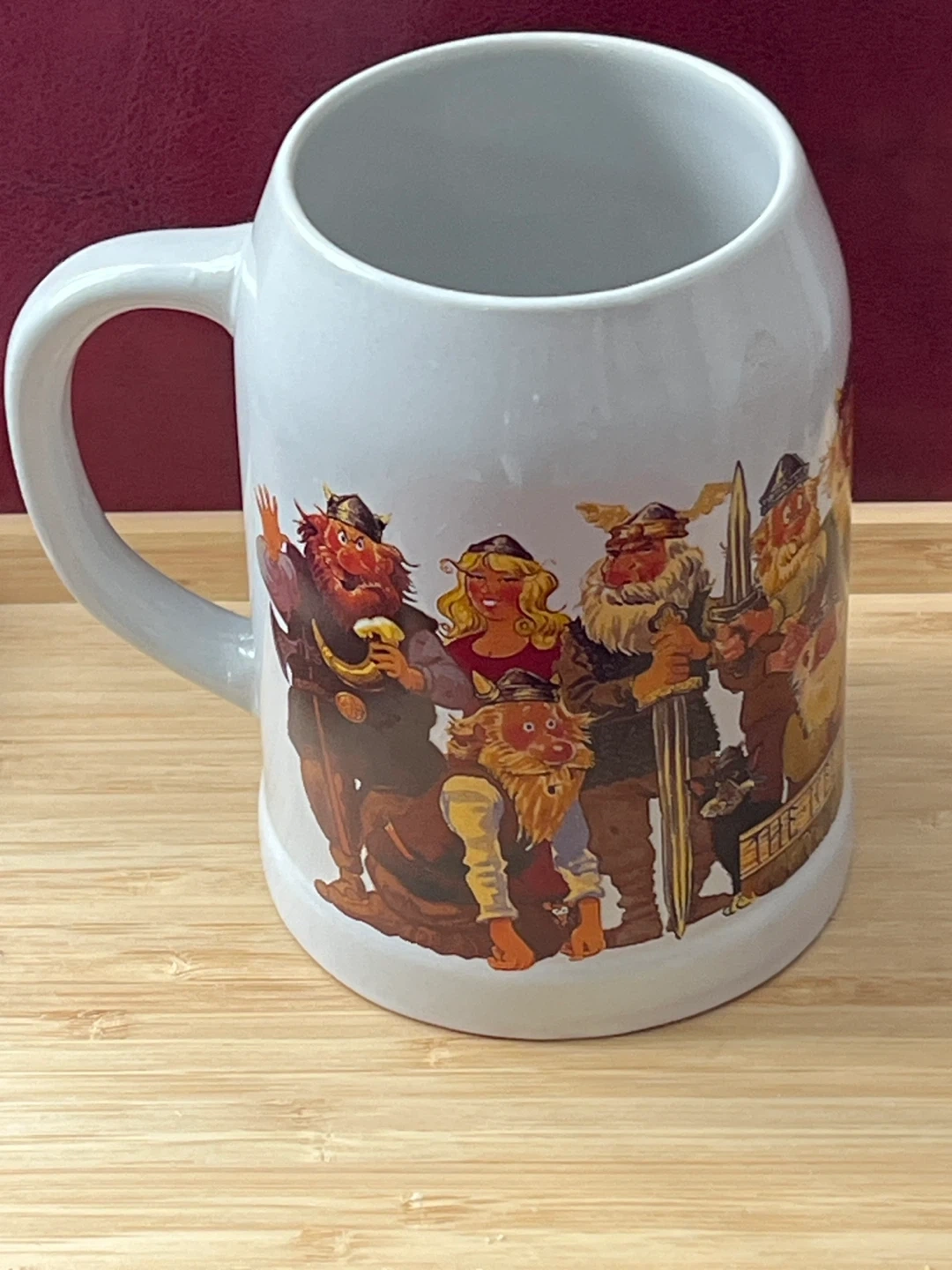 Solarfilma Kelandk The Icelandic Viking Family Cartoon Ceramic Tankard Stein Mug. It's in great shape and ready for your favourite beverage.