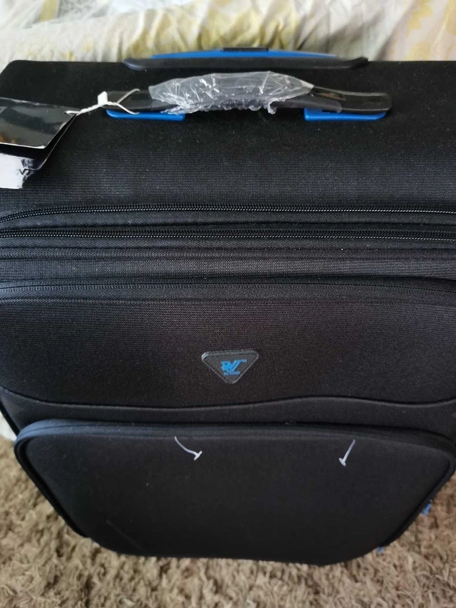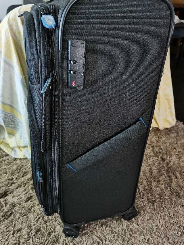This brand new black luggage is perfect for your next trip! It's durable, stylish, and ready to go. size in the pictures side lock This luggage has never been used and is in supreme condition. It has lots of room for everything you need. If you're reading this, it's still available! PU ranchlands NW
