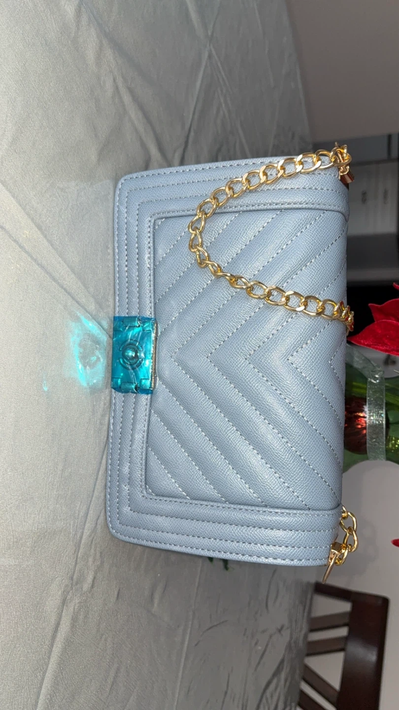 Chevron Chain Shoulder Bag - White, Blue, Brown
