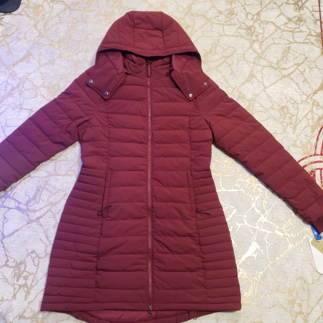 Brand new Women's long-length hooded parka. Burgundy colour. Primaloft insulation. Zip front closure. Size large.Never used size LG for sale only $49 for more info contact me anytime π π
