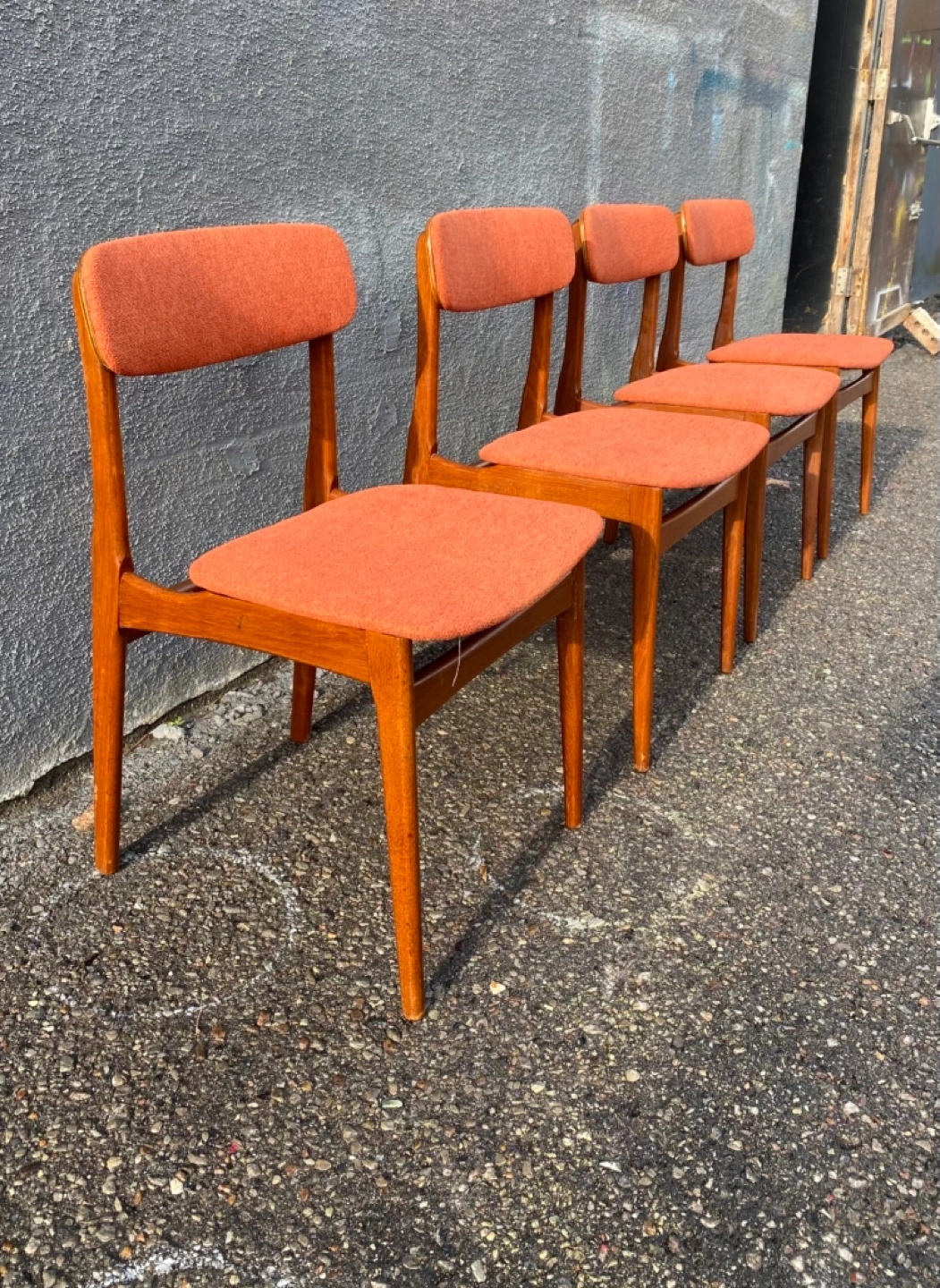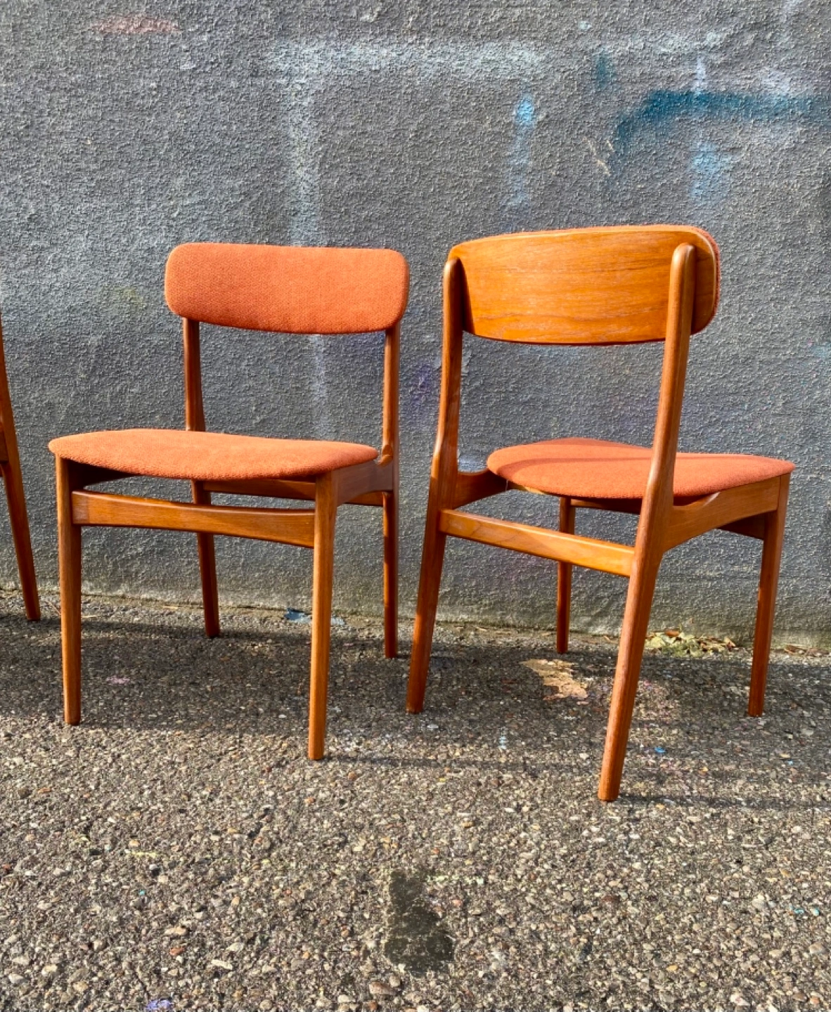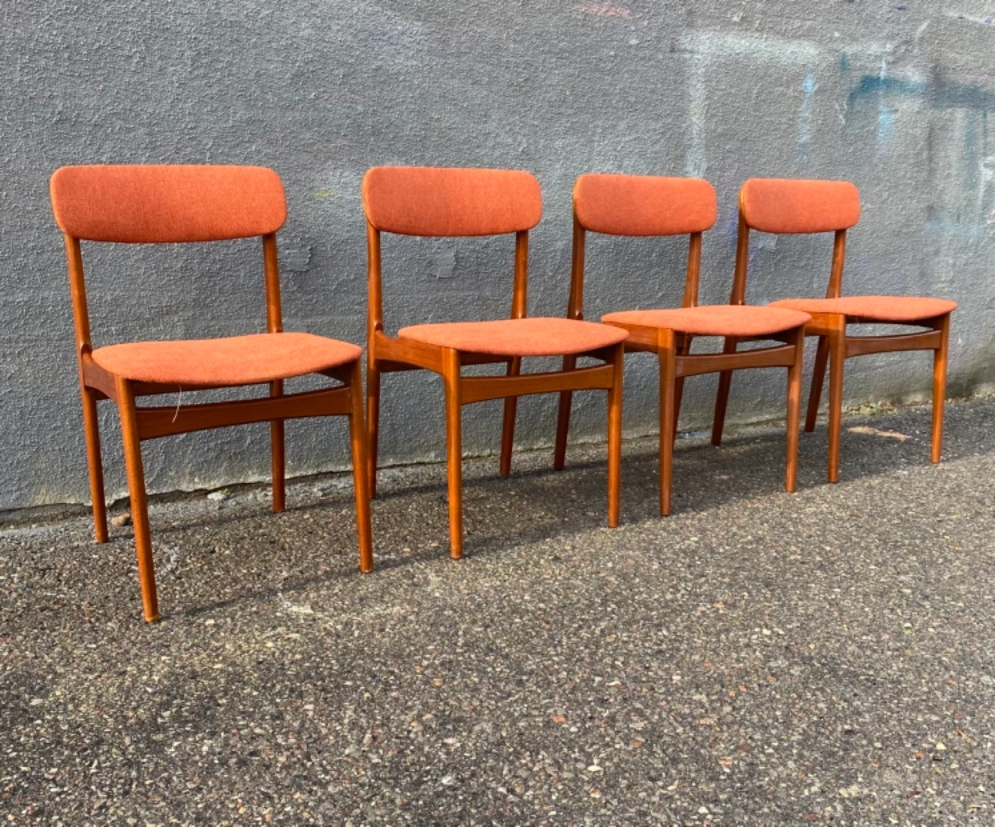 Beautiful Danish dining chairs by Thorso Stolefabrik. Chairs have been completely refurbished, complete with all new MCM upholstery. NOTE price listed is is per chair sold as a set of four. Viewing by appointment at Teak Pop Up Shop, located at 50 Bond Street East Street East in Oshawa