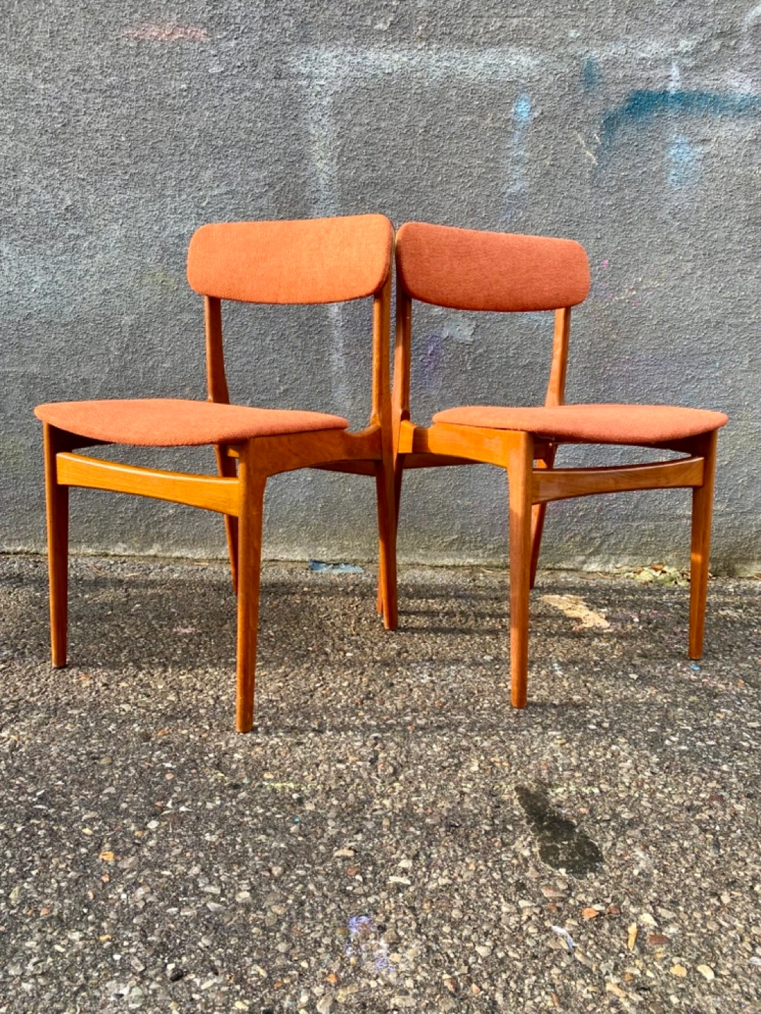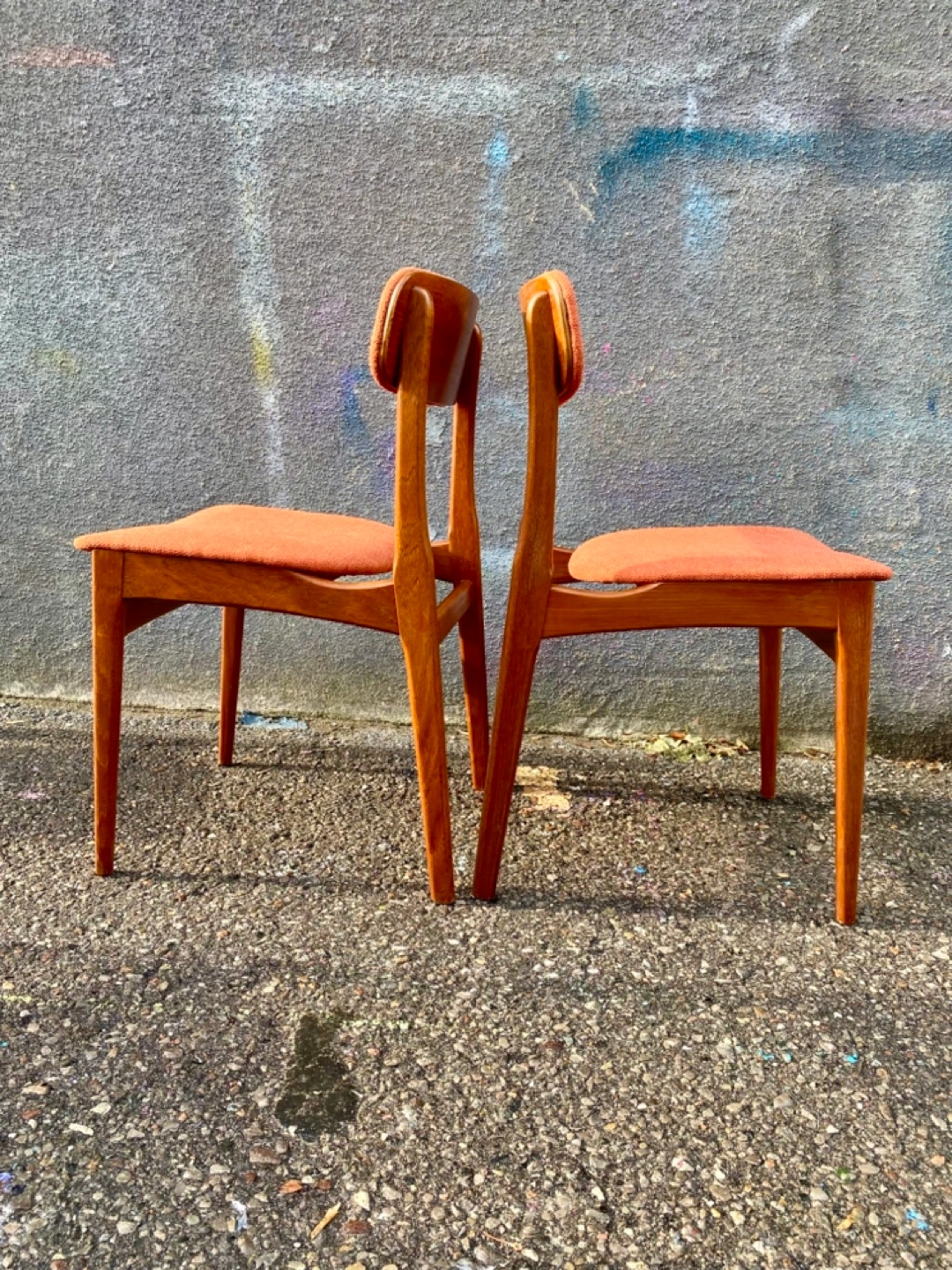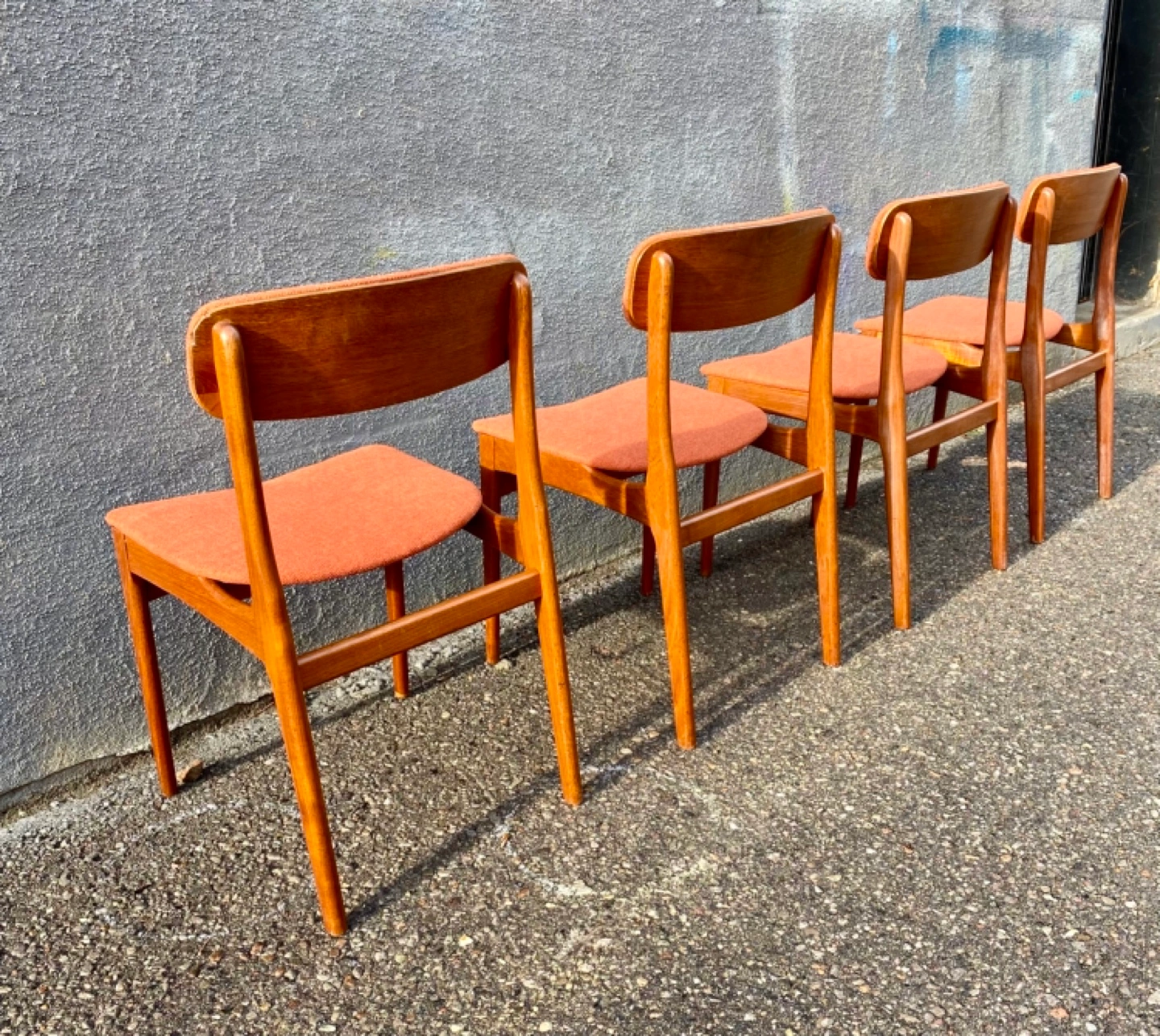 Beautiful Danish dining chairs by Thorso Stolefabrik. Chairs have been completely refurbished, complete with all new MCM upholstery. NOTE price listed is is per chair sold as a set of four. Viewing by appointment at Teak Pop Up Shop, located at 50 Bond Street East Street East in Oshawa