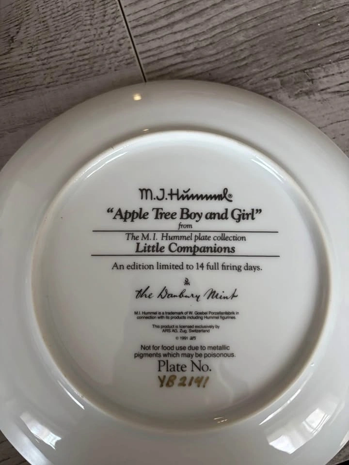 Buy & SellDanbury Mint Hummel PlatesDanbury Mint Hummel Plates$100Four Hummel plates from the “Little Companions” Collection. $30 each or the set of four for $100. All in excellent condition.WHERE TO MEETCheck LocationView MapSELLERDebbieOrangeville100 reviews0 chats·0 favorites·6 viewsSEND CHAT TO SELLERHi Debbie! I’m interested in your listing.Hi Debbie! I’m interested in your listing.Get the Karrot app to chatSign In to chat