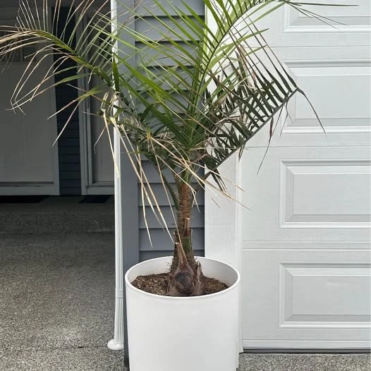 Purchased from Niagara Tropics in 2023. Recently repotted with fresh soil in a 19 gal Veradek planter. Selling this tree because it’s getting too big for my small yard. Mule Palms are a hybrid cross between a Queen Palm and a Pindo Palm, offering the cold hardiness of the Pindo and the majestic look of the Queen. This species is extremely rare and expensive to produce. They are very cold hardy and tolerate temperature drops down to -7C and brief drops to -12C.