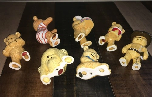 Danbury Mint Hand Painted Bone China Bear Collection. This lot includes all 7 pictured - ready to add to your collection or start your own. So adorable. In excellent condition no chips or cracks.