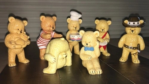 Danbury Mint Hand Painted Bone China Bear Collection. This lot includes all 7 pictured - ready to add to your collection or start your own. So adorable. In excellent condition no chips or cracks.