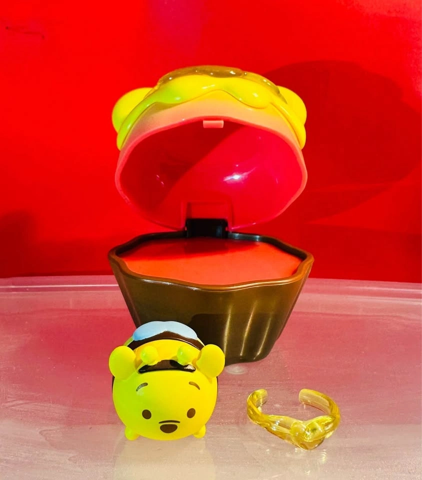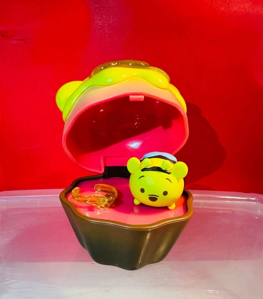 Disney Tsum Tsum Cupcake Blindbox Figurines featuring Winnie the Pooh and Stitch. These have never been taken out of the box and kept in their original packaging. Each set includes a cupcake outer shell with the character and a ring. The ring can be worn separately or with the figure. There's an on/off switch to light up the inside of the cupcake (a video is available showing this feature). Winnie the Pooh cupcake is 7cm tall, Stitch is 9cm tall. $10 each!