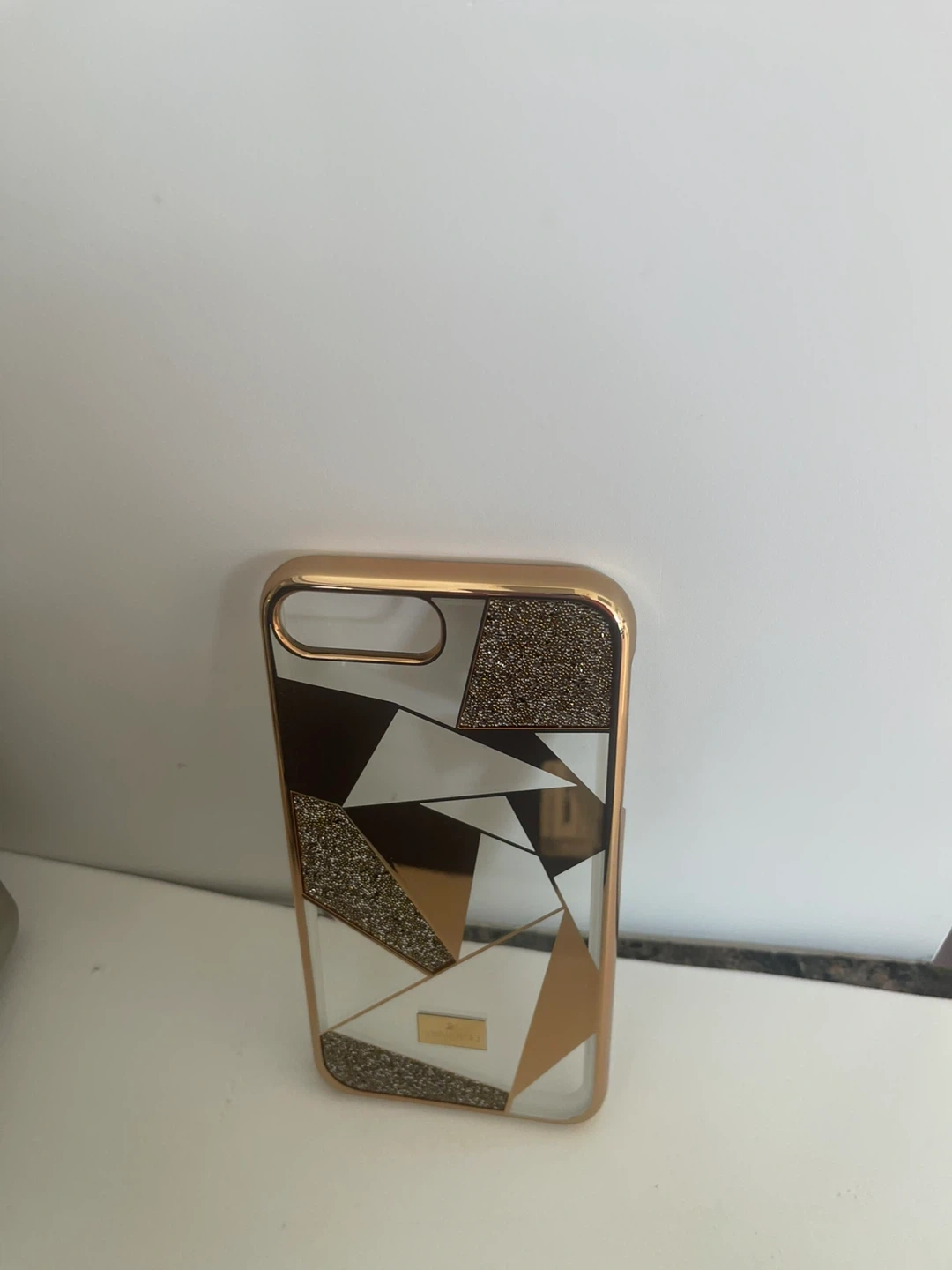 1. First one features a striking geometric design with rose gold accents and shimmering crystal embellishments. Comes in its original box. PRICE on box - 75.00 + tax.