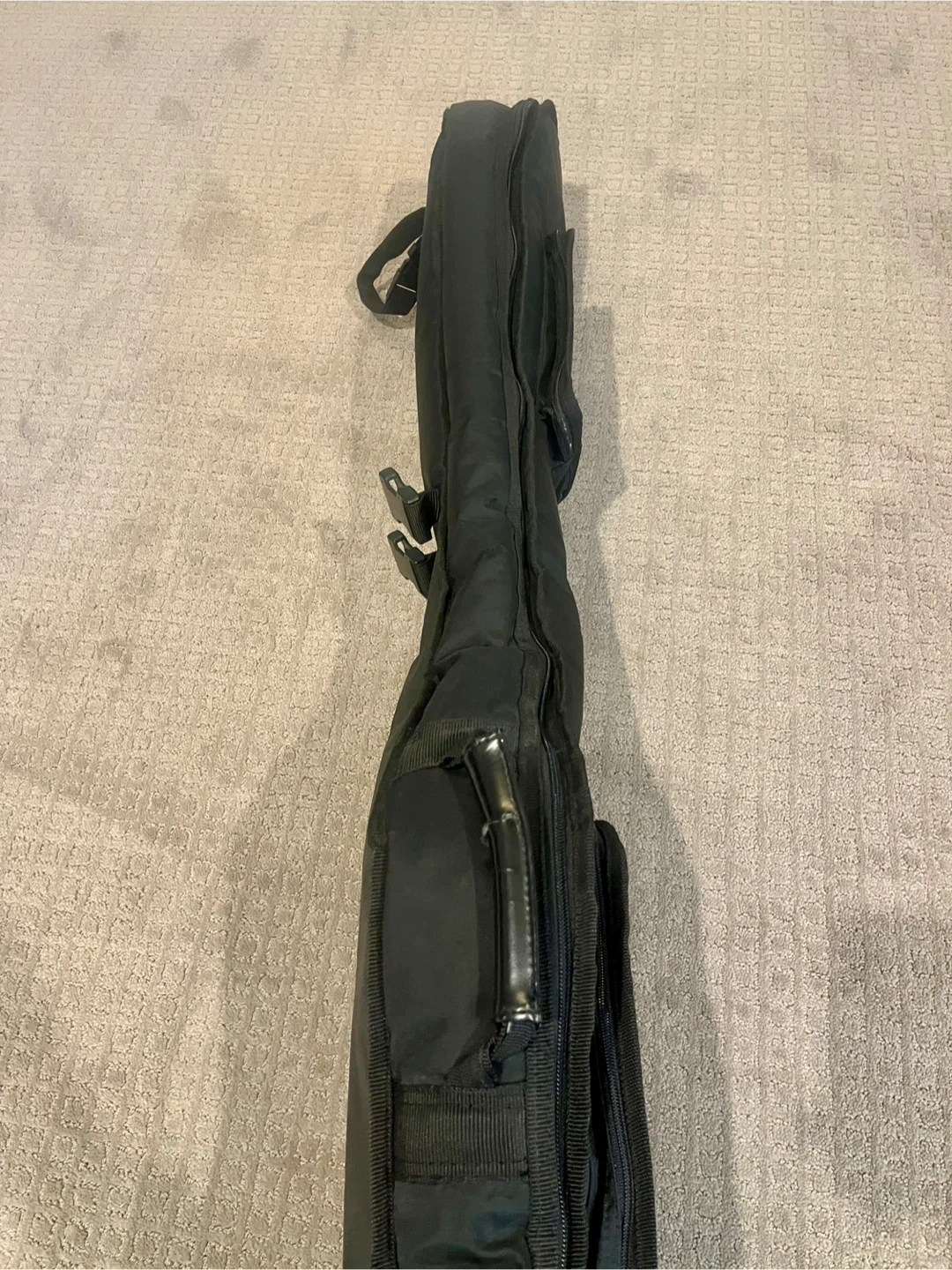 Wings brand soft case for a standard sized electric bass guitar. Will fit Fender Precision and Jazz size basses and many others. It measures about 47” long, 14” at its widest point and 4” deep. It’s an older case and has some sun fading but the zippers work and has decent padding. Unfortunately the backpack straps are missing so it just has the main carry handle. Has two zippered pockets on the outside, one small and one large. Feel free to bring your bass along to make sure it will fit.