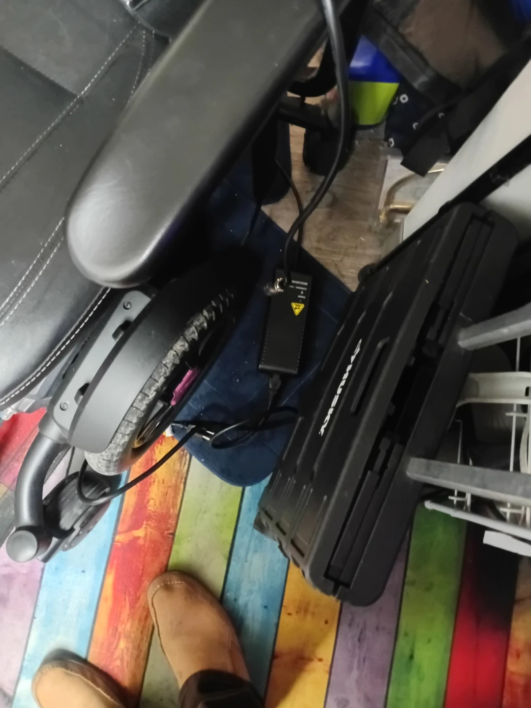 Black leather power wheelchair by Pride. It's in brand new .... never used includes charger. Full owner's manual no tip six wheel system. This chair offers excellent mobility support for daily use. Purchased for wife she never wrote it and tragically passed away brand spanking new looking for less than half the price that we paid. No room to park must sell.