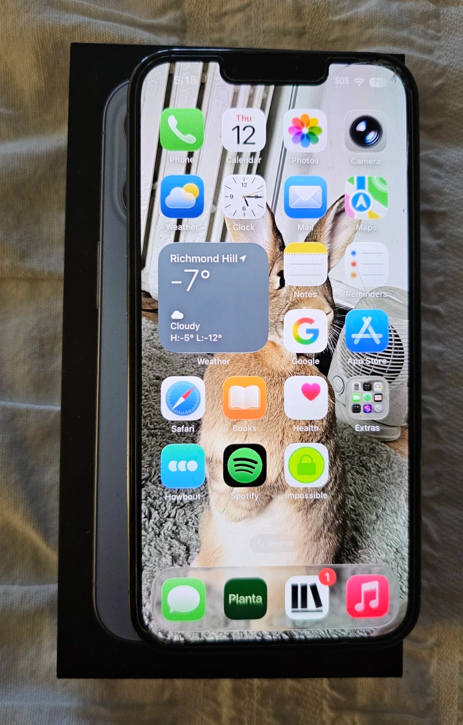 This is an Apple iPhone 13 Pro. It comes with 128 GB of storage capacity. The phone's battery is at 81% maximum capacity.Always used with screen protector and case. Phone is in like new condition with all original parts. Everything works perfectly. It currently has a screen protector on it. You might see some cracks in the pictures but those are just on the screen protector, phone screen itself is flawless. Comes with original box and charging cable.