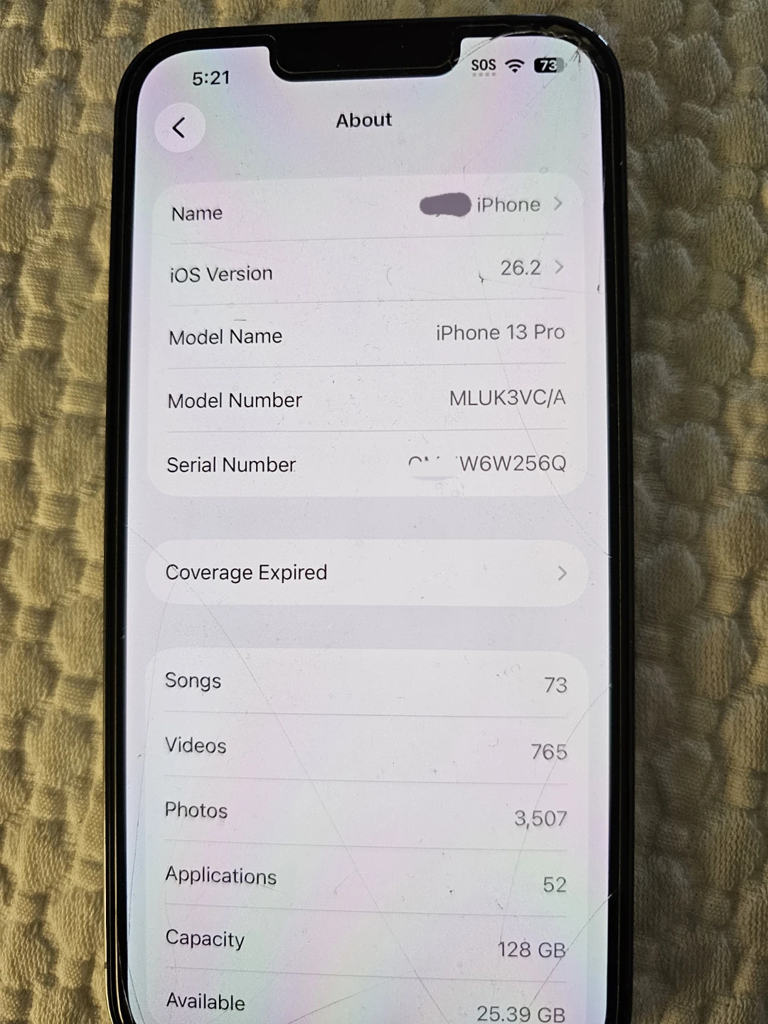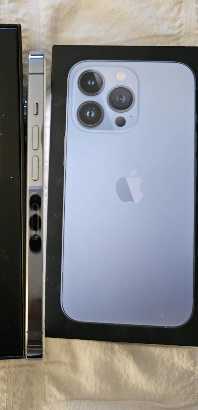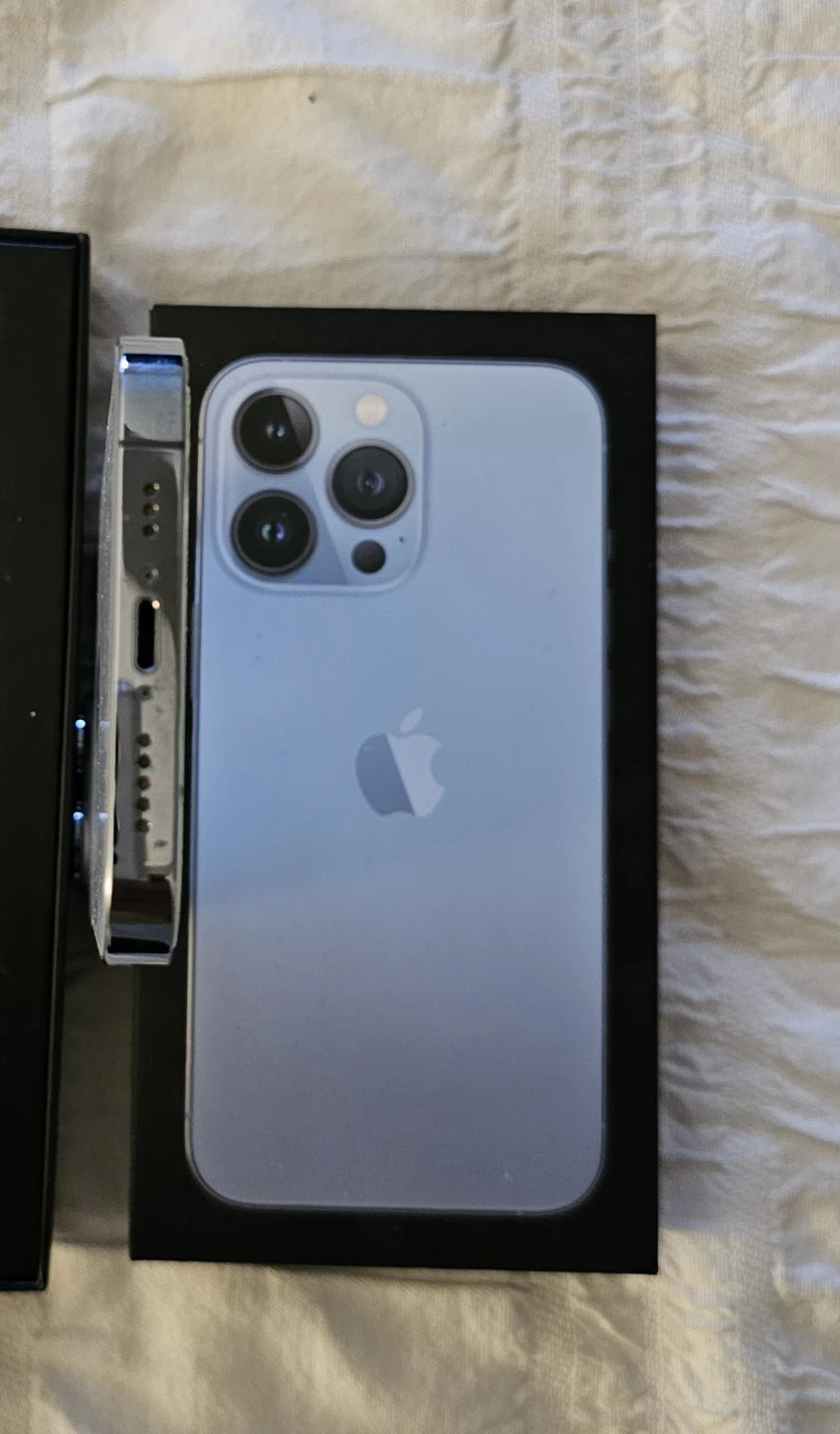 This is an Apple iPhone 13 Pro. It comes with 128 GB of storage capacity. The phone's battery is at 81% maximum capacity.Always used with screen protector and case. Phone is in like new condition with all original parts. Everything works perfectly. It currently has a screen protector on it. You might see some cracks in the pictures but those are just on the screen protector, phone screen itself is flawless. Comes with original box and charging cable.