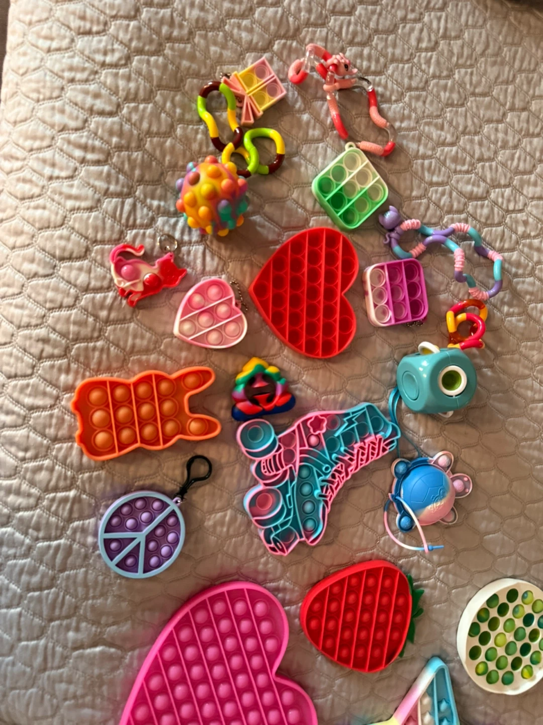 A fun collection of pop it fidget toys in various shapes and colours. These silicone toys provide satisfying pops and are great for stress relief. Includes stars, hearts, fruits, and more!