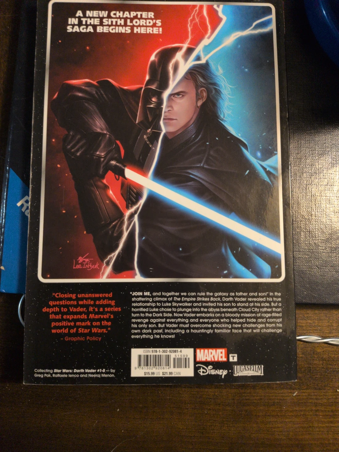 Selling the Star Wars Darth Vader: Dark Heart of the Sith graphic novel! This is a great addition to any Star Wars collection. It collects Star Wars: Darth Vader issues #1-5 by Greg Pak, Raffaele Ienco, and Neeraj Menon