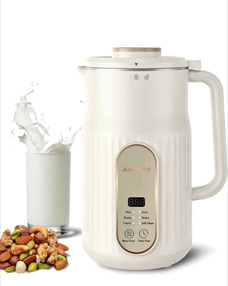 AlfaBot N2 Automatic Almond Milk Machine for Homemade Plant-Based Milk, Oat, Soy, Yogurt and Dairy Free Beverages, 35 OZ Soy Milk Maker with Delay Setting and Self Cleaning. Enjoy fresh, delicious nut milk that's free from preservatives, additives, and any other unwanted ingredients. It's the perfect way to create healthy and sustainable plant-based milk that's good for you and the environment. The nut milk maker machine is versatile and can be used to make a variety of plant-based milks, including almond milk, cashew milk, coconut milk, multigrain milk and more. There are 5 basic modes for meeting your needs: Nut, Beans, Yogurt, Juice and Grains. It's a mixer with blending and boiling function.