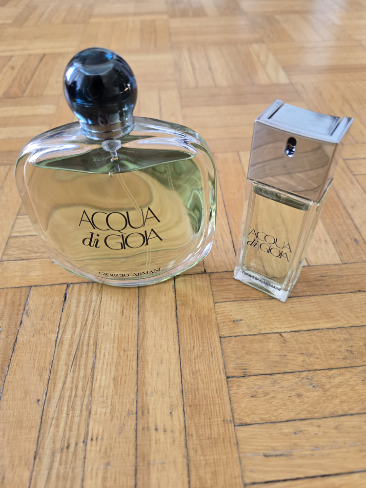 100ml Giorgio Armani Acqua Di Gioia Eau de Parfum plus a smaller travel size. Barely used, stored in a dark cool closet out of sunlight.