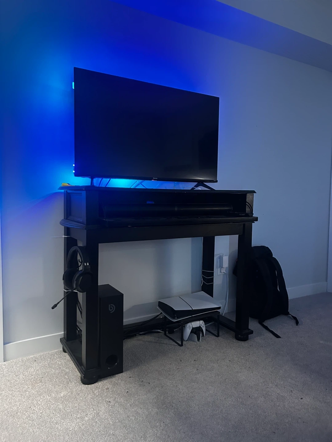 TV, LED lights, soundbar, and subwoofer shown in photos are not included.