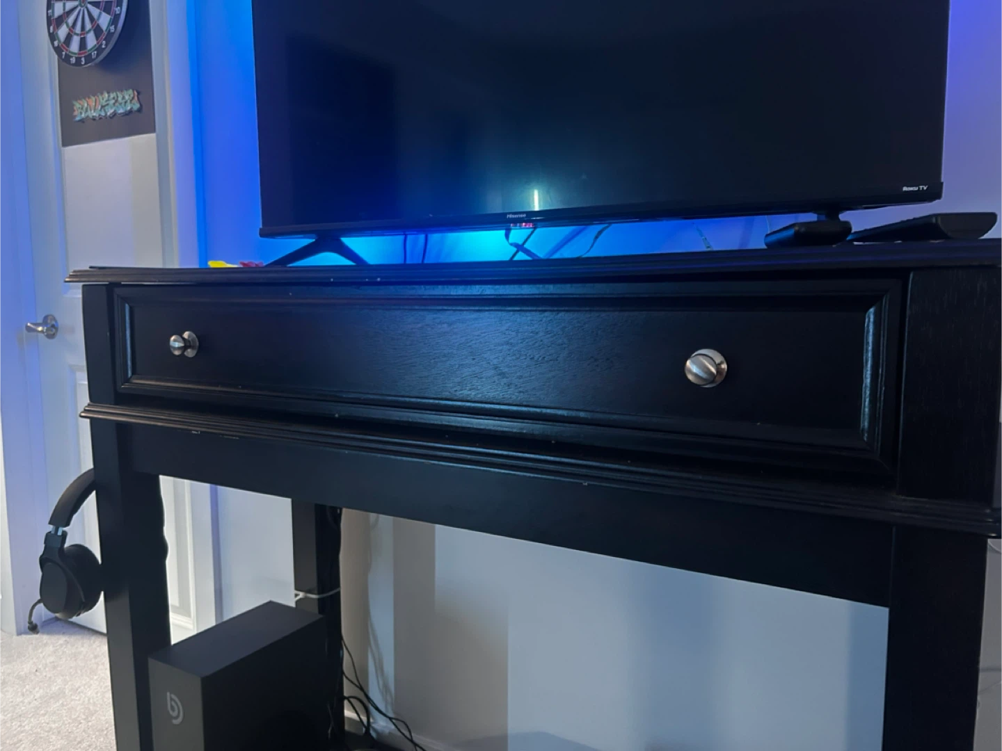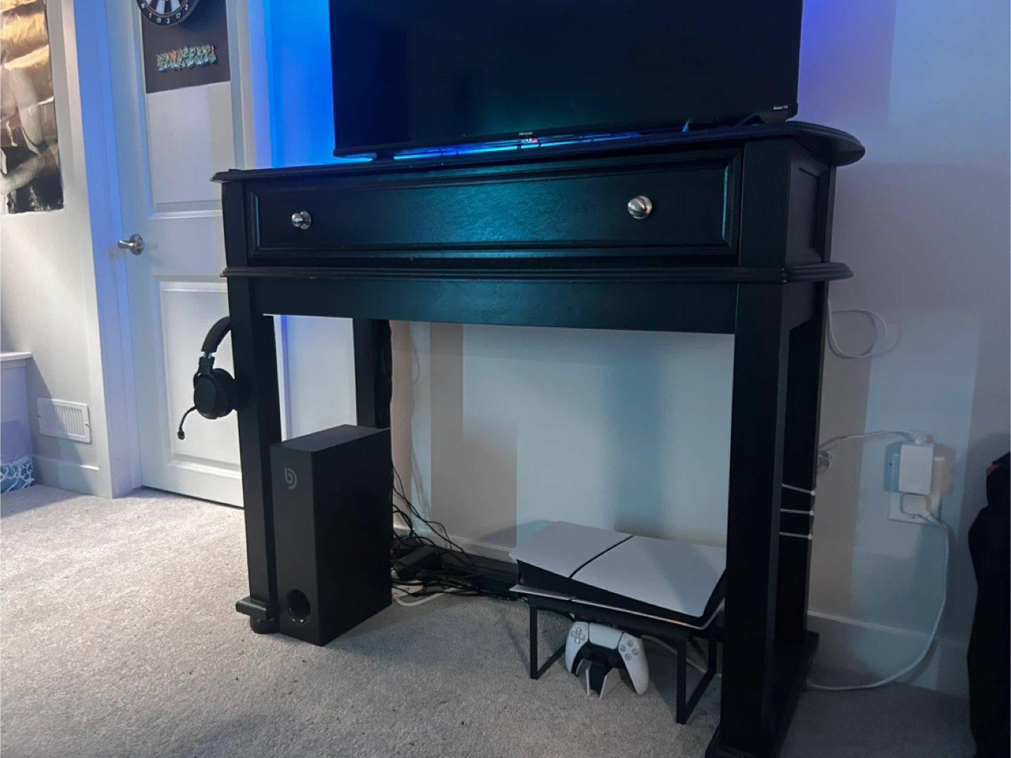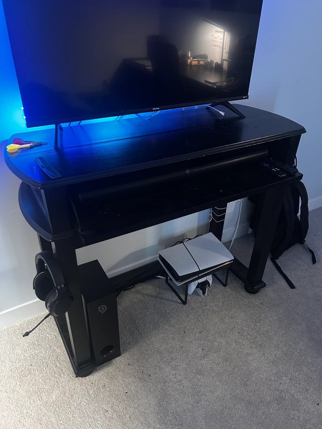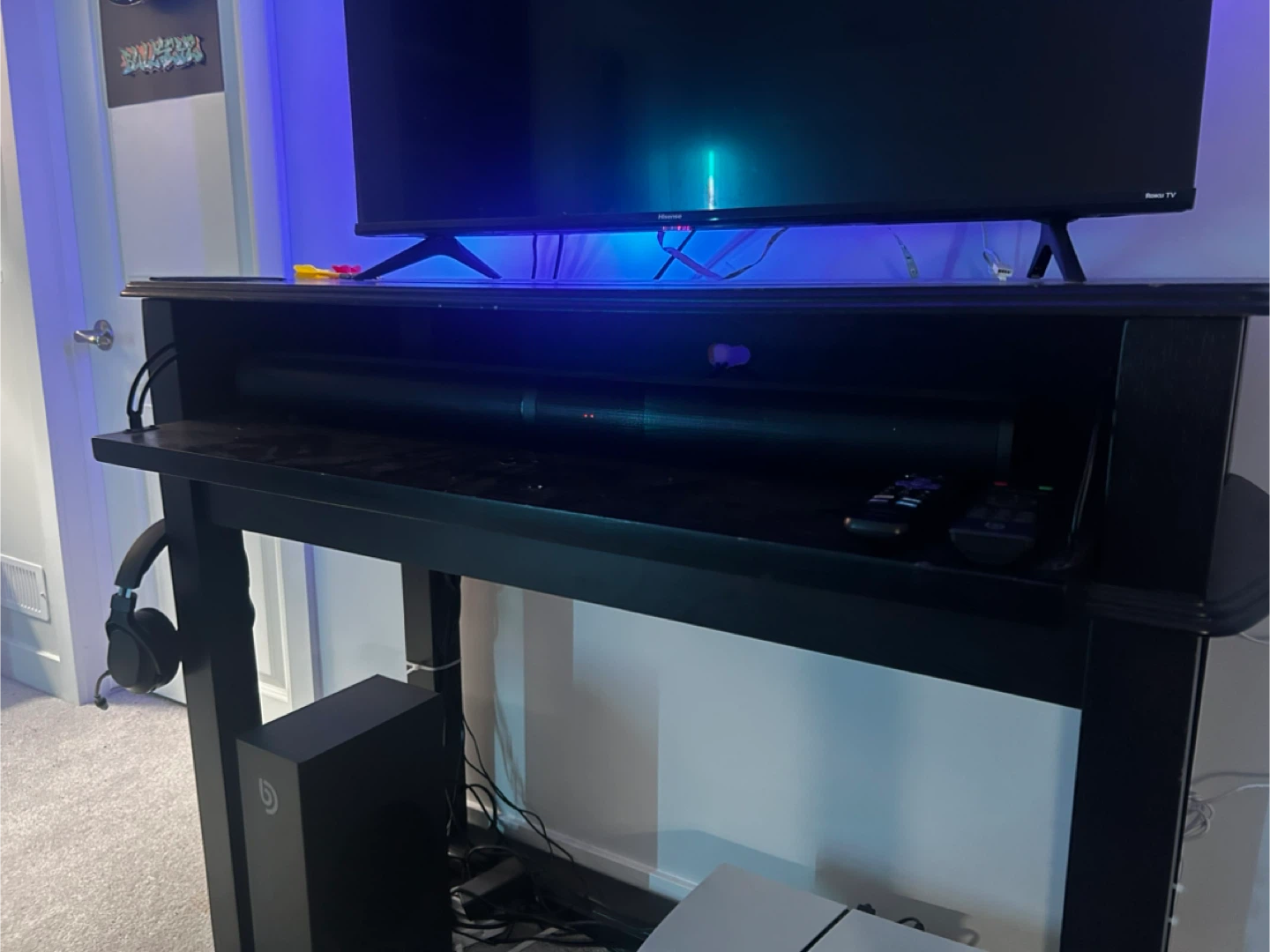 TV, LED lights, soundbar, and subwoofer shown in photos are not included.
