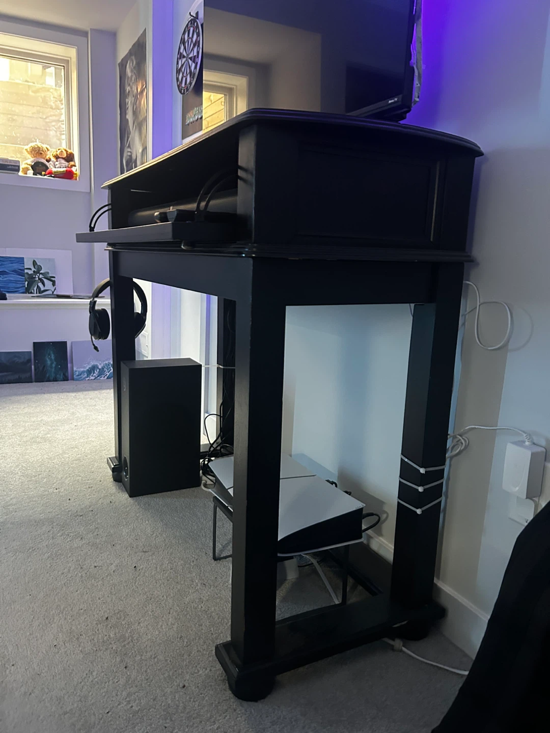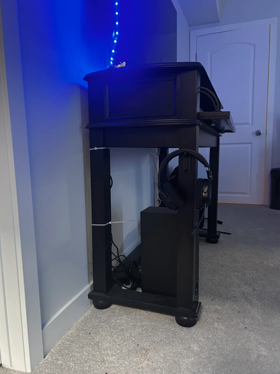 I previously zip-tied some cables behind the stand for organization. These will be removed before the sale and do not affect the appearance or structure.
