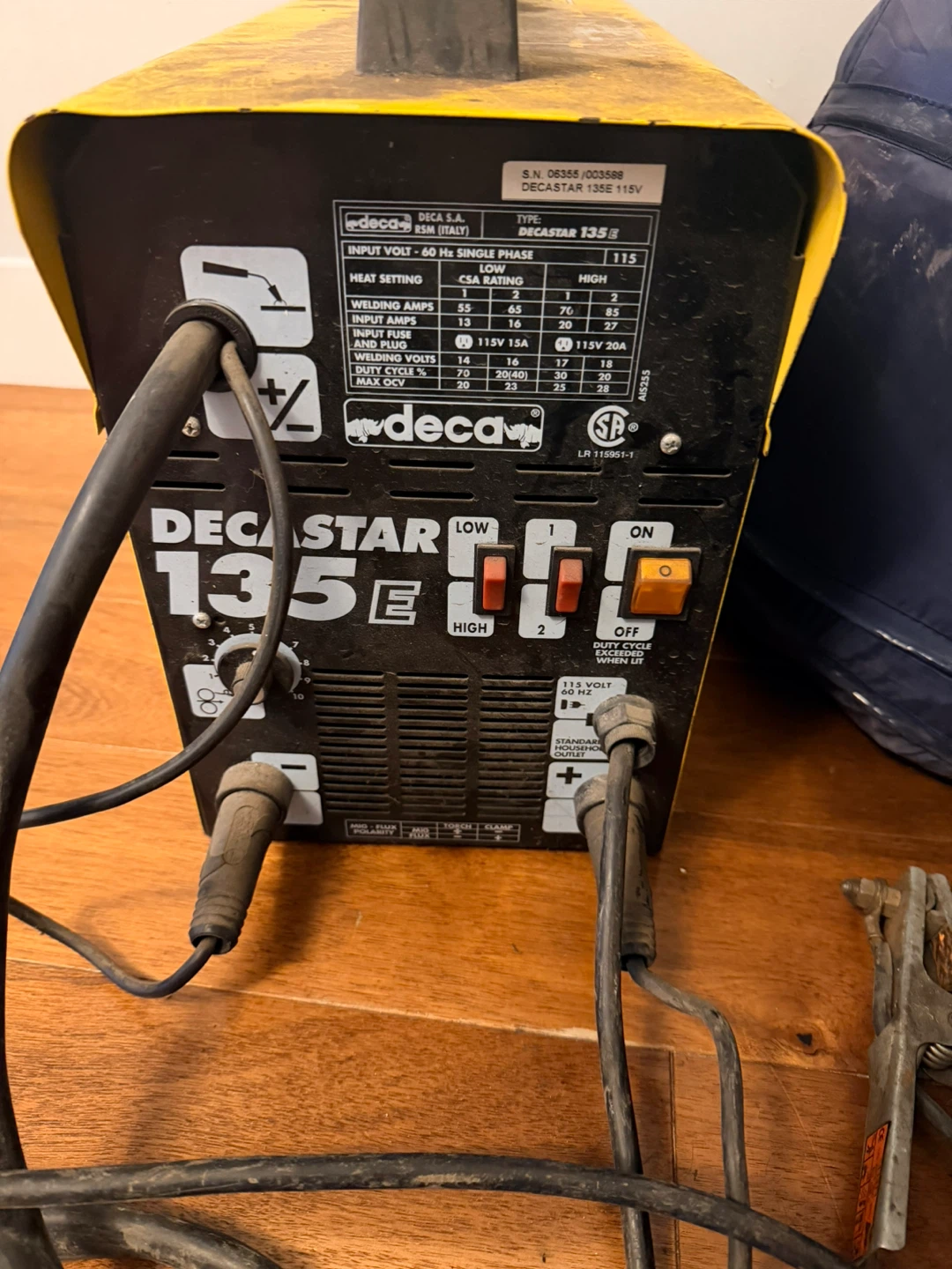 🏆Selling a Deca DECASTAR 135E 115V welder. It's a single phase welding machine with heat settings. Includes welding amps and input fuse. Please see photos for more details!