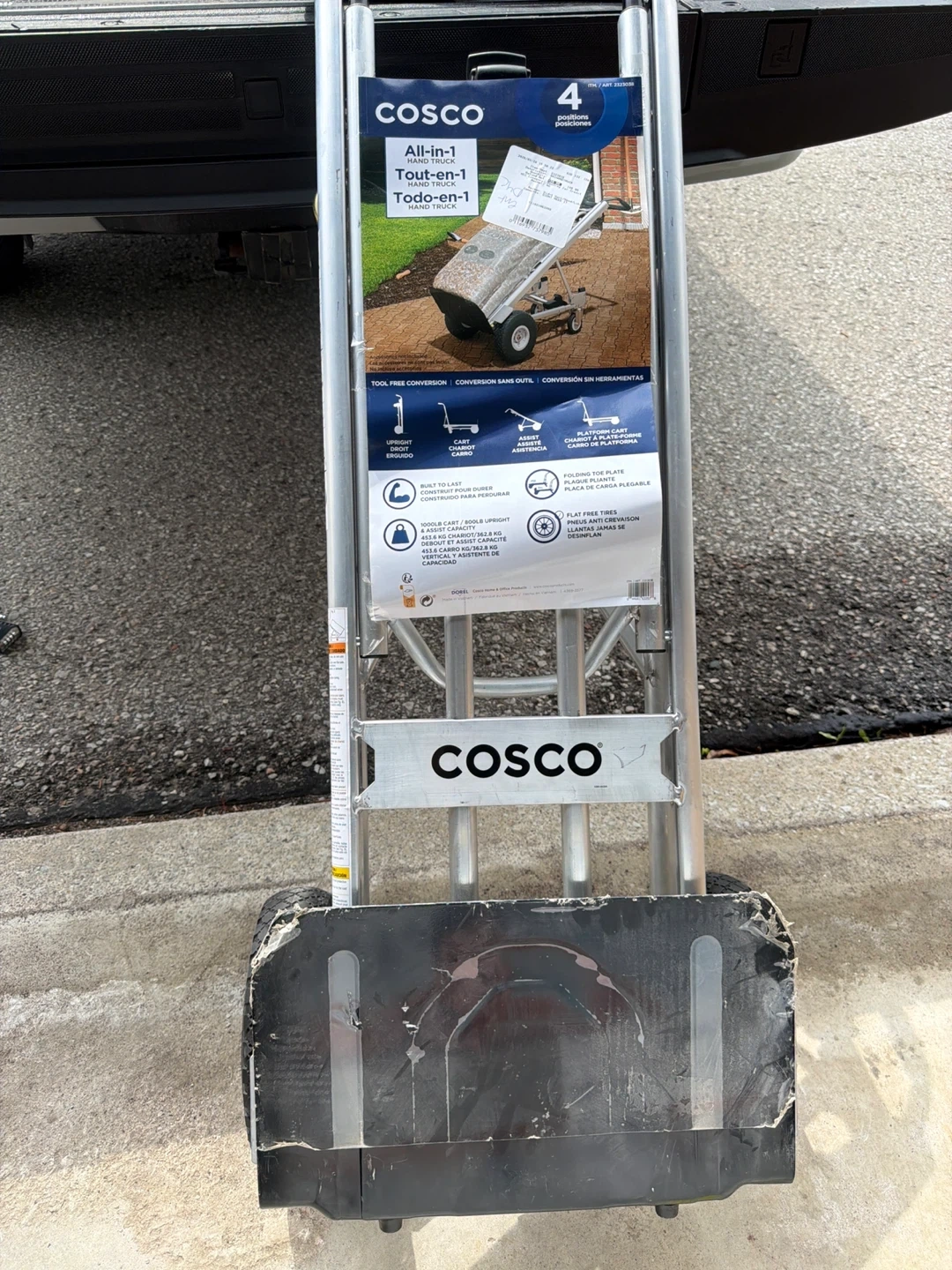 COSCO All-in-1 hand truck that converts to a cart or platform. It's built to last with flat-free tires. Capacity is 1000lb for cart use and 800lb for upright use. This is great for moving heavy items!