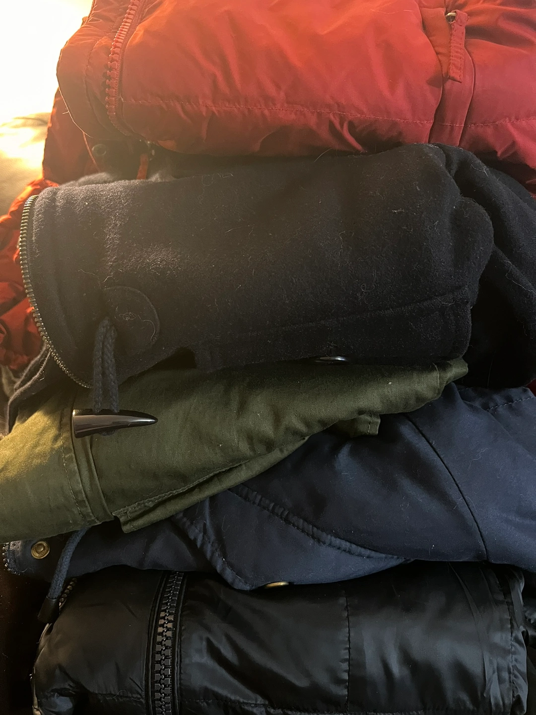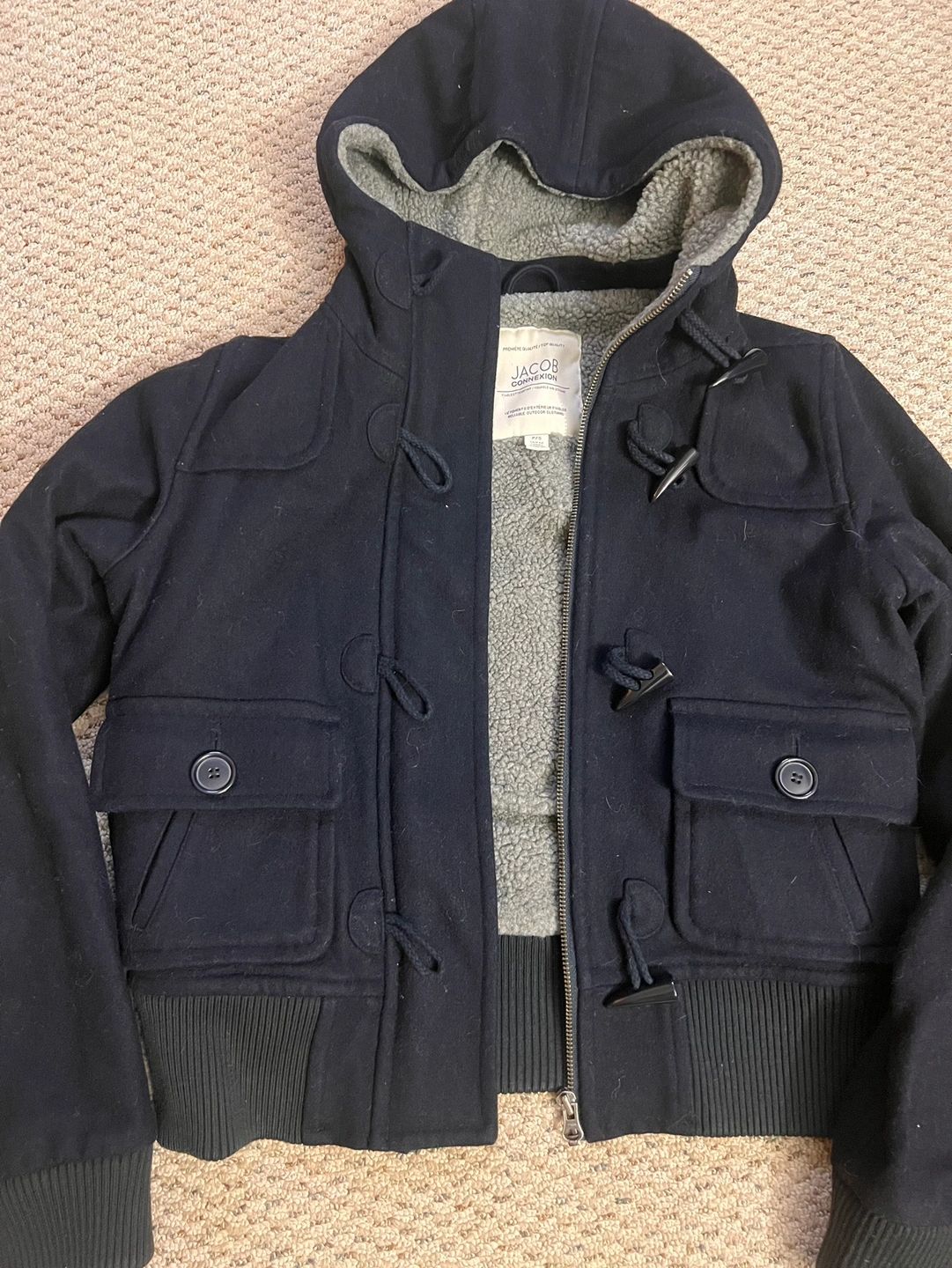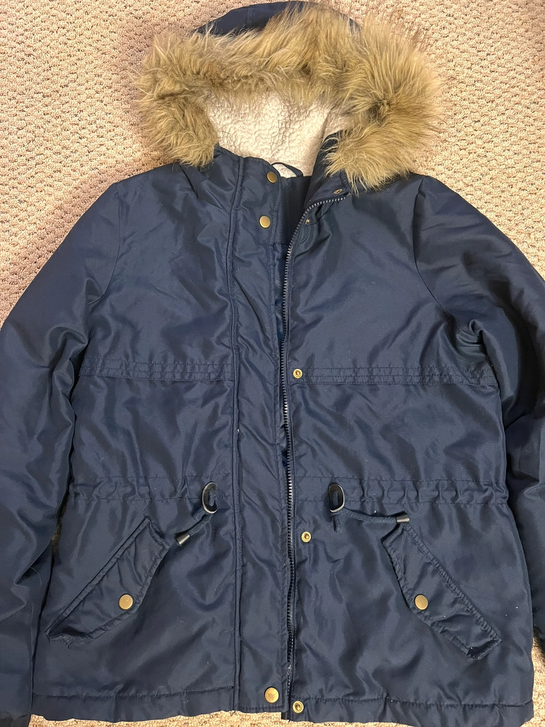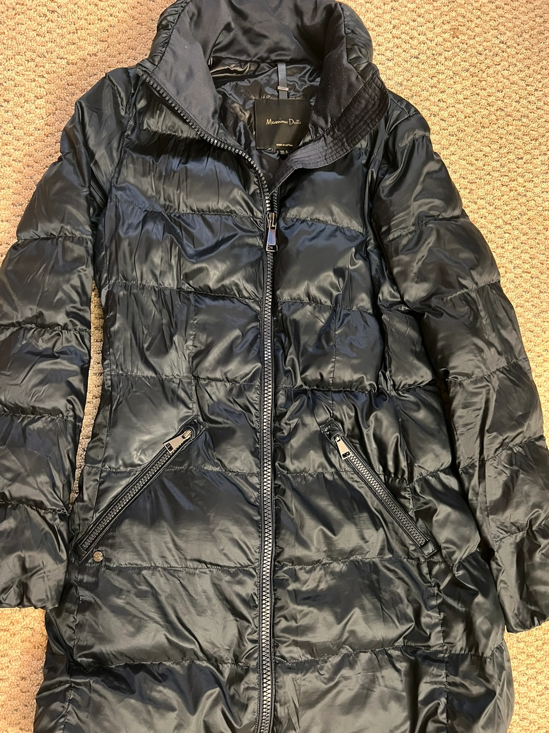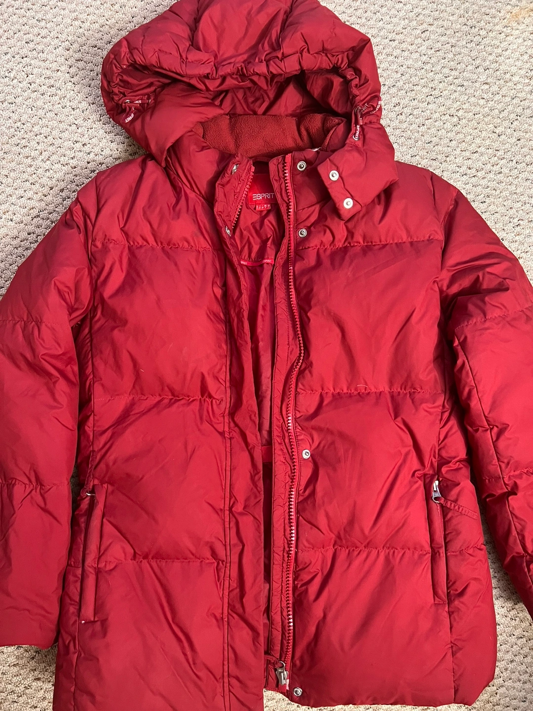 Bundle of 6 winter jackets. Various colours and styles. Great for layering and staying warm in the winter. Trench coat gio w/ hood black S, Massimo Dutti no hood navy blue S, navy blue jacket w/ fur hood S, Cedar wood w/ hood green xs, short wool jacket with hood black S and red super puff esprit winter jacket with removable hood. All in good condition. $15 for all. Pick up Burquitlam