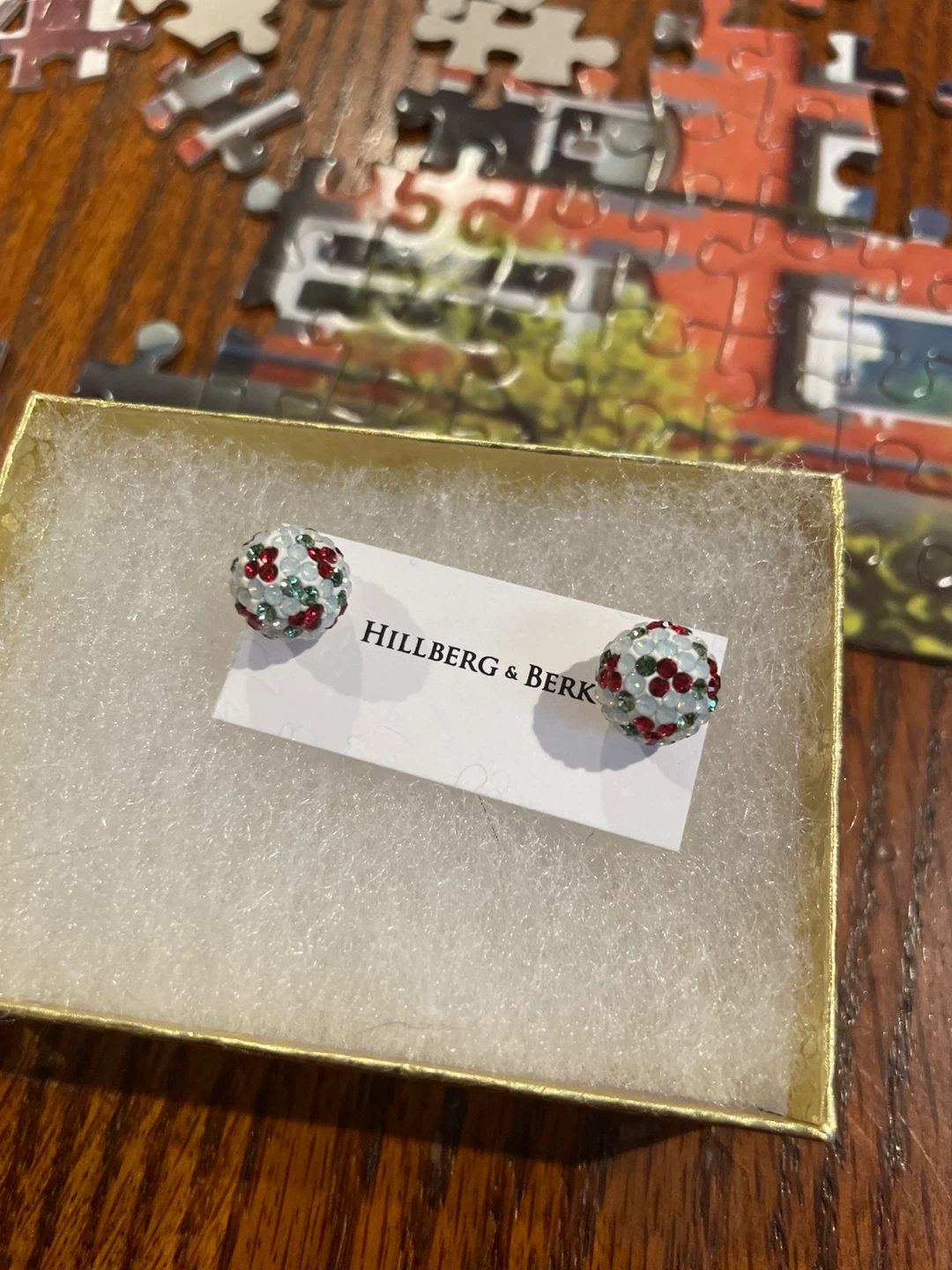 These are a pair of Hillberg & Berk stud earrings. They are in excellent condition and come in their original box, brand new unused