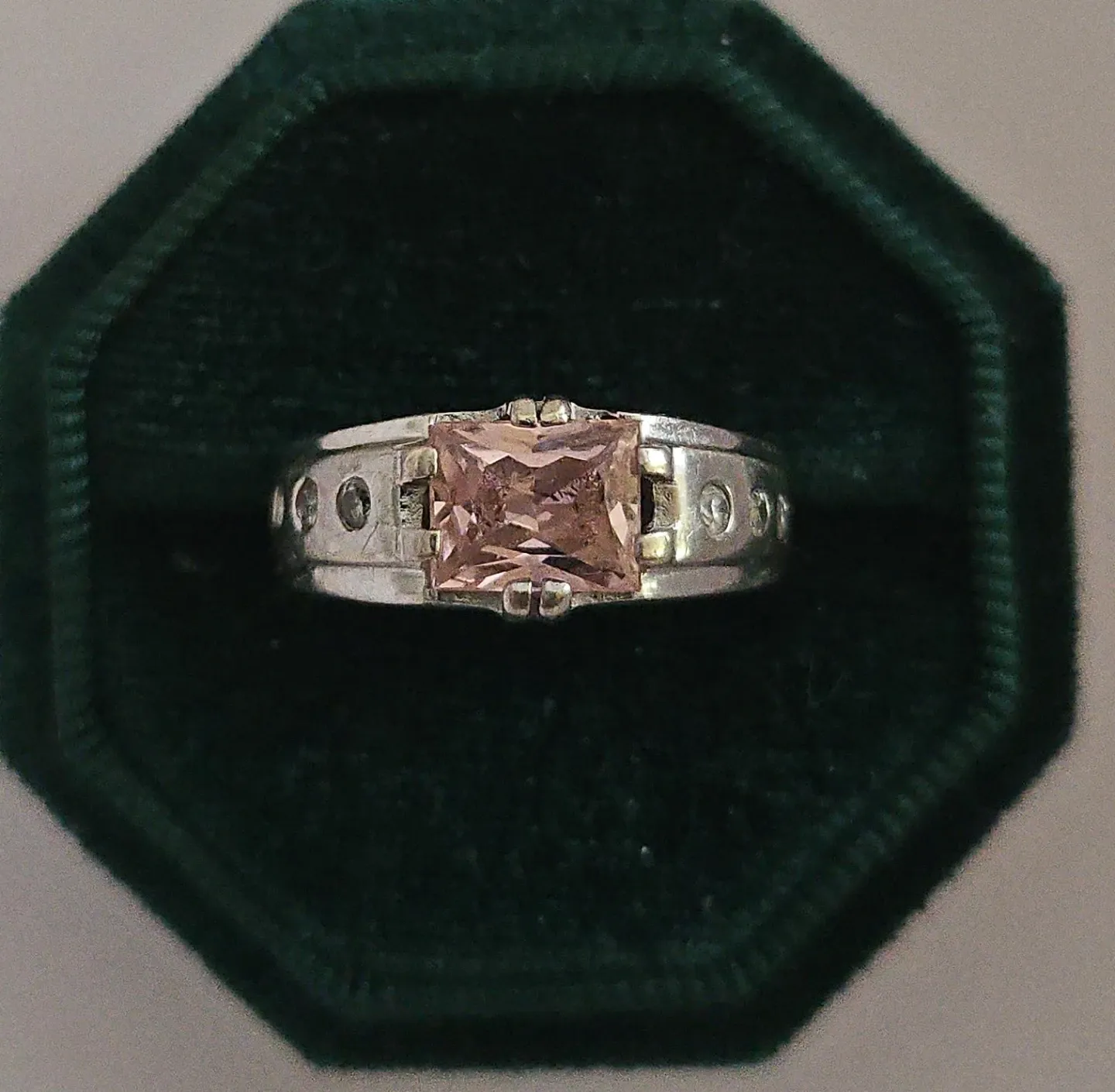 Sterling Silver Ring with Pink Square Stone