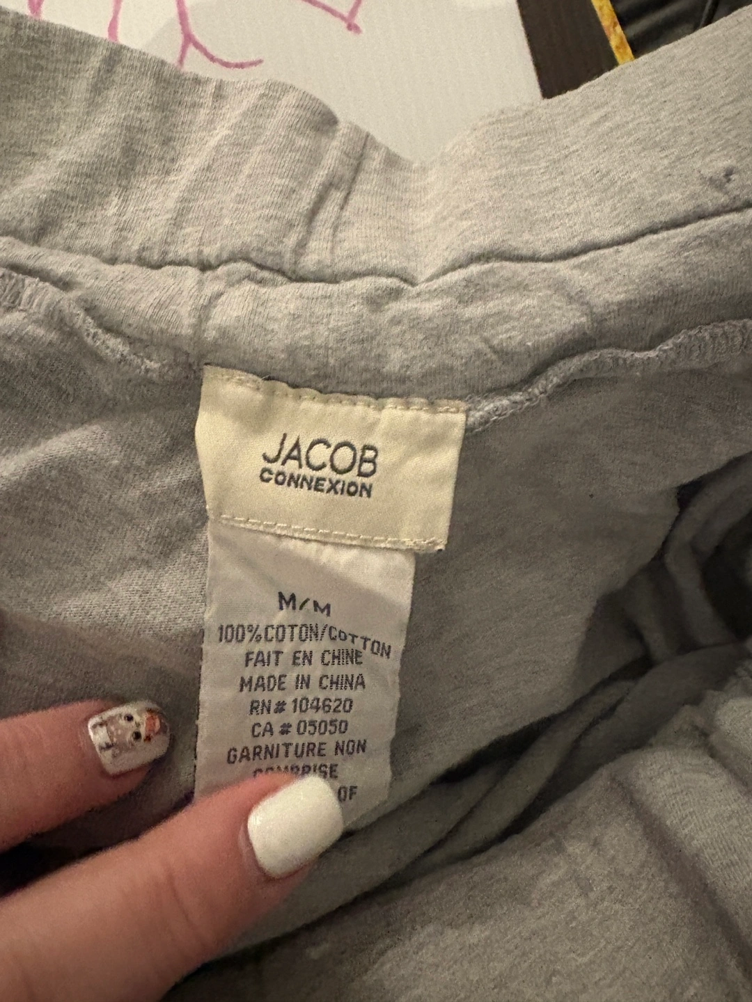 Grey jogger pants with drawstring. Size Medium. 100% cotton. Made in China.