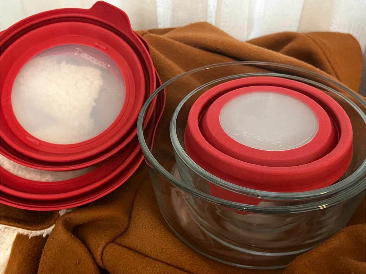 Selling a set of 3 Anchor Hocking glass food storage containers! These are microwave safe, great for meal prepping or storing leftovers.