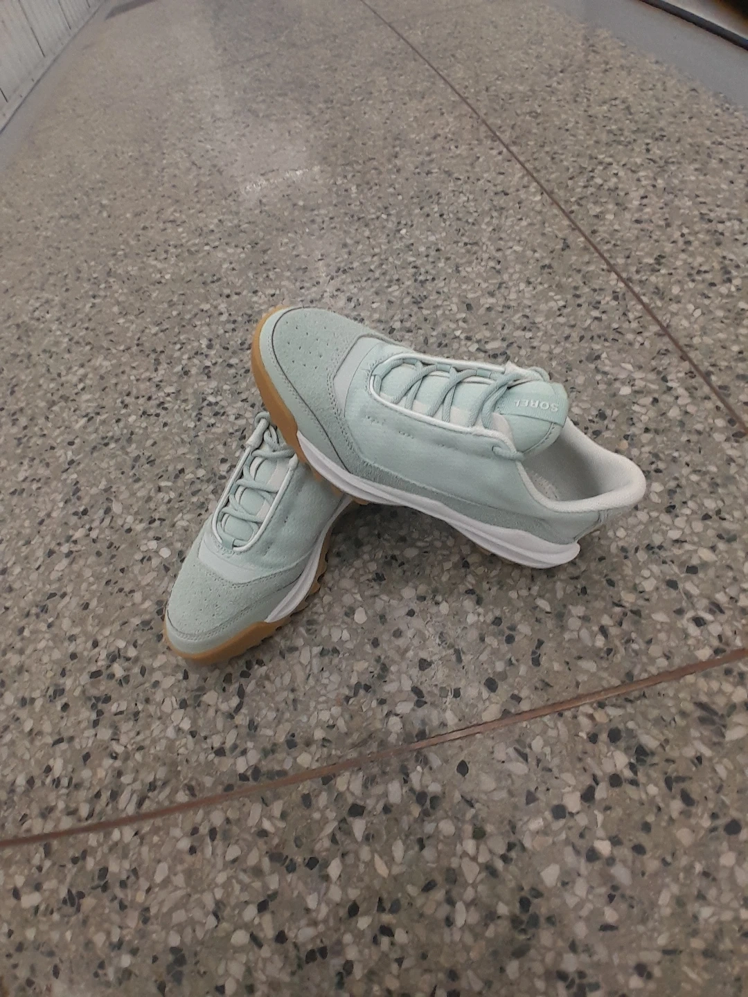 Sorel women's sneakers in a light blue colour. They feature a rubber sole for good grip. These are great for everyday wear or light activities Women's size 7.5