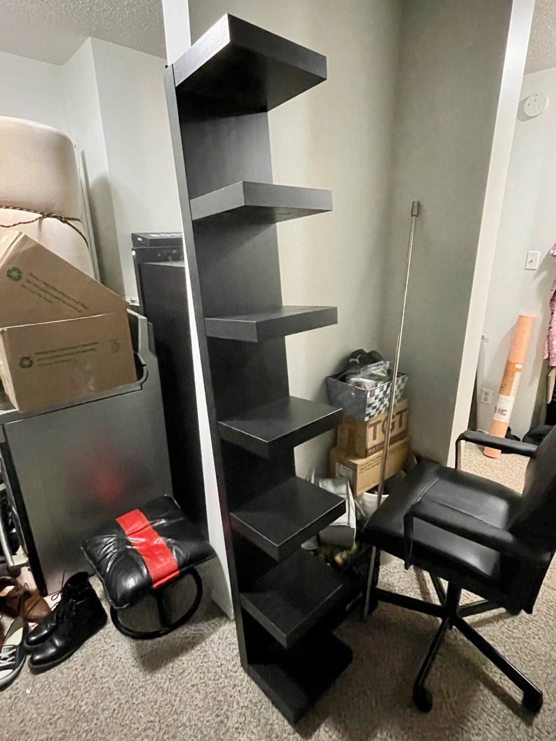 It's perfect for adding some extra storage and style to any room. Can be attached to wall, already has metal brackets securely attached ready to hang on wall. The unit features multiple shelves, providing ample space for books, decor, or other items. It's in great shape and ready to find a new home!