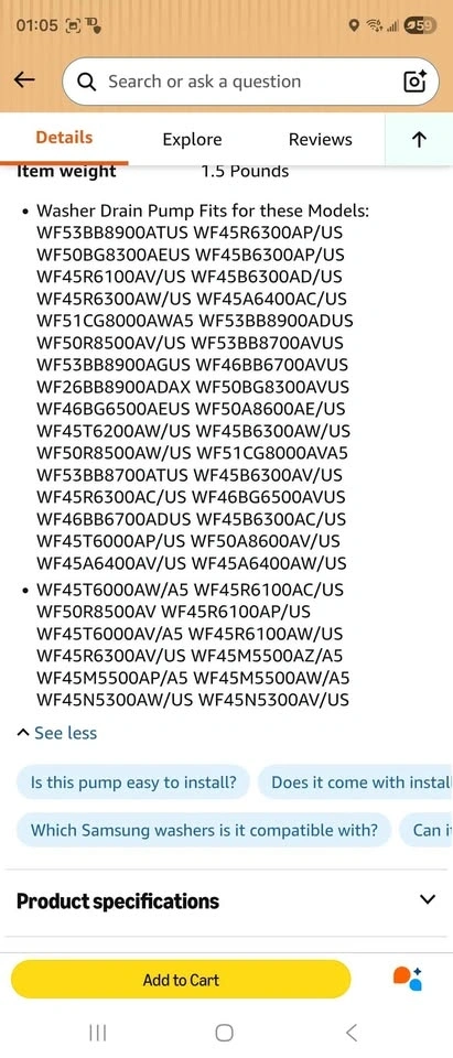 Brand new, never used washer drain pump compatible with many Samsung washing machine models. A great replacement part if your washer isn't draining properly. Features a direct replacement fit, strong and reliable motor, durable build quality, and a plug-and-play design (120V / 60Hz / 80W). Pickup in Mississauga (Winston Churchill & Britannia). Cash preferred.